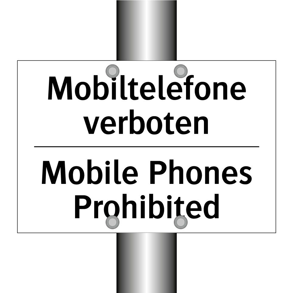 Zweisprachiges Verbotsschild mit deutschem Text Mobiltelefone verboten und englischem Text Mobile Phones Prohibited