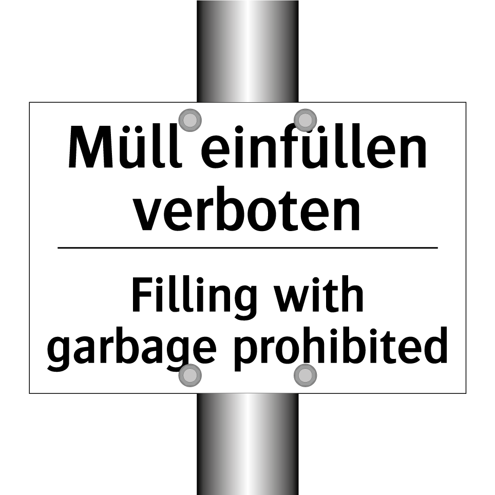 Zweisprachiges Verbotsschild mit deutschem Text Müll einfüllen verboten und englischem Text Filling with garbage prohibited