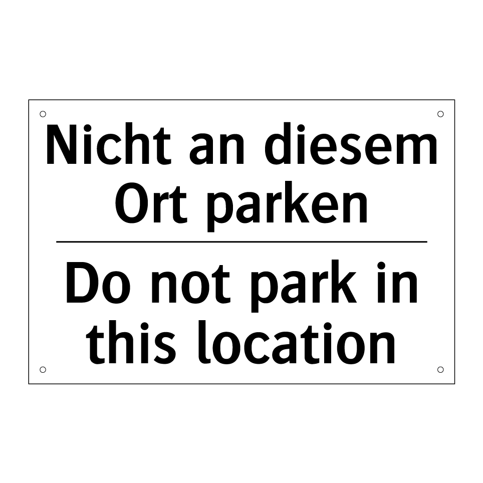 Diese zweisprachige Verbotsschild ist ideal, um sicherzustellen, dass niemand an unerwünschten Orten parkt. Mit klarer, schwarzer Schrift auf weißem Hintergrund ist die Botschaft sowohl auf Deutsch als auch auf Englisch leicht verständlich. Die Verwendung beider Sprachen erhöht die Verständlichkeit und ist besonders nützlich in internationalen Umgebungen oder an Orten mit vielen Touristen. Diese Verbotsschilder sind perfekt für Parkplätze, private Einfahrten oder andere Bereiche, in denen das Parken eingeschränkt werden muss. Durch die deutliche Kennzeichnung wird das Risiko von Falschparkern minimiert, was zu einem reibungsloseren Verkehrsfluss beiträgt.