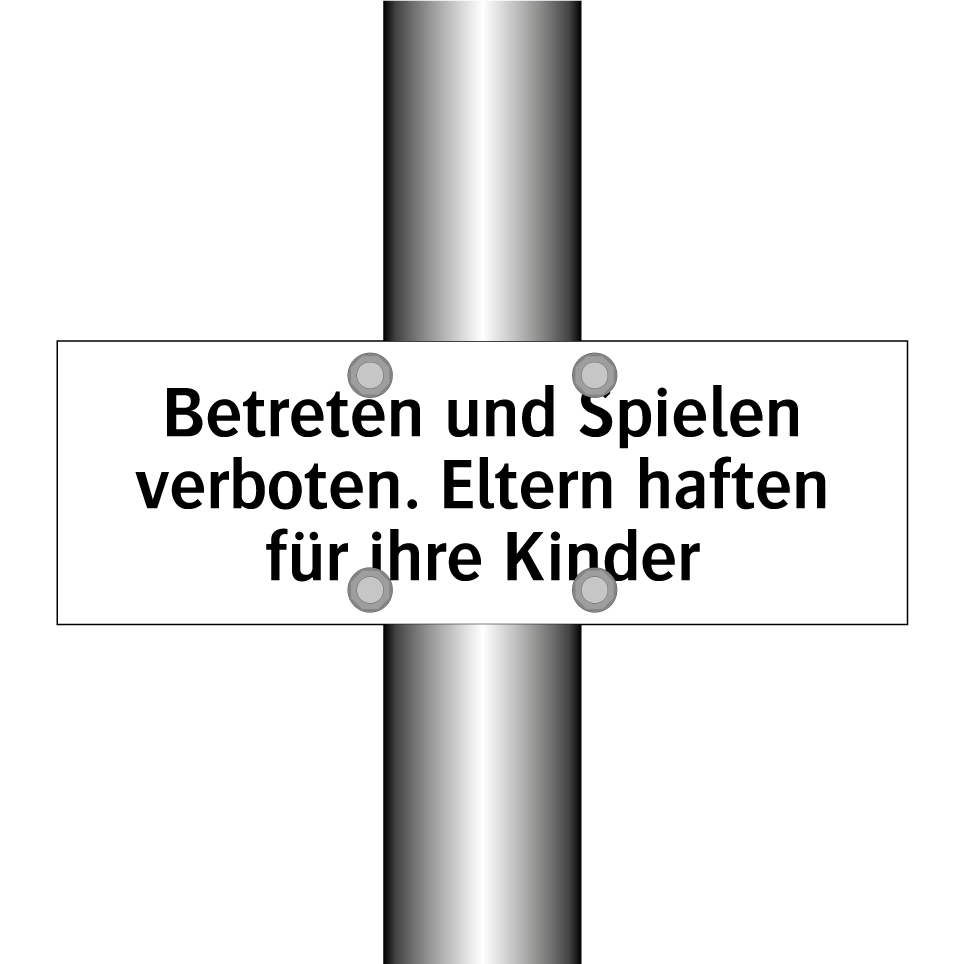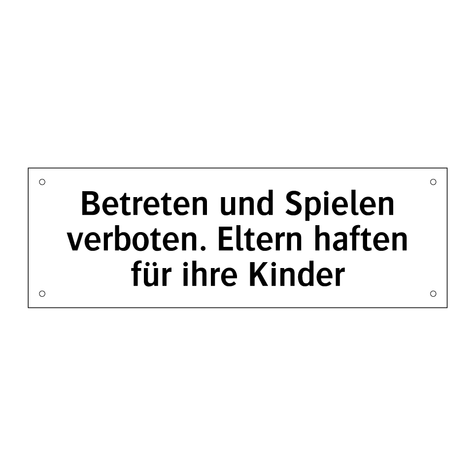 Verbotsschild mit dem Text Betreten und Spielen verboten. Eltern haften für ihre Kinder
