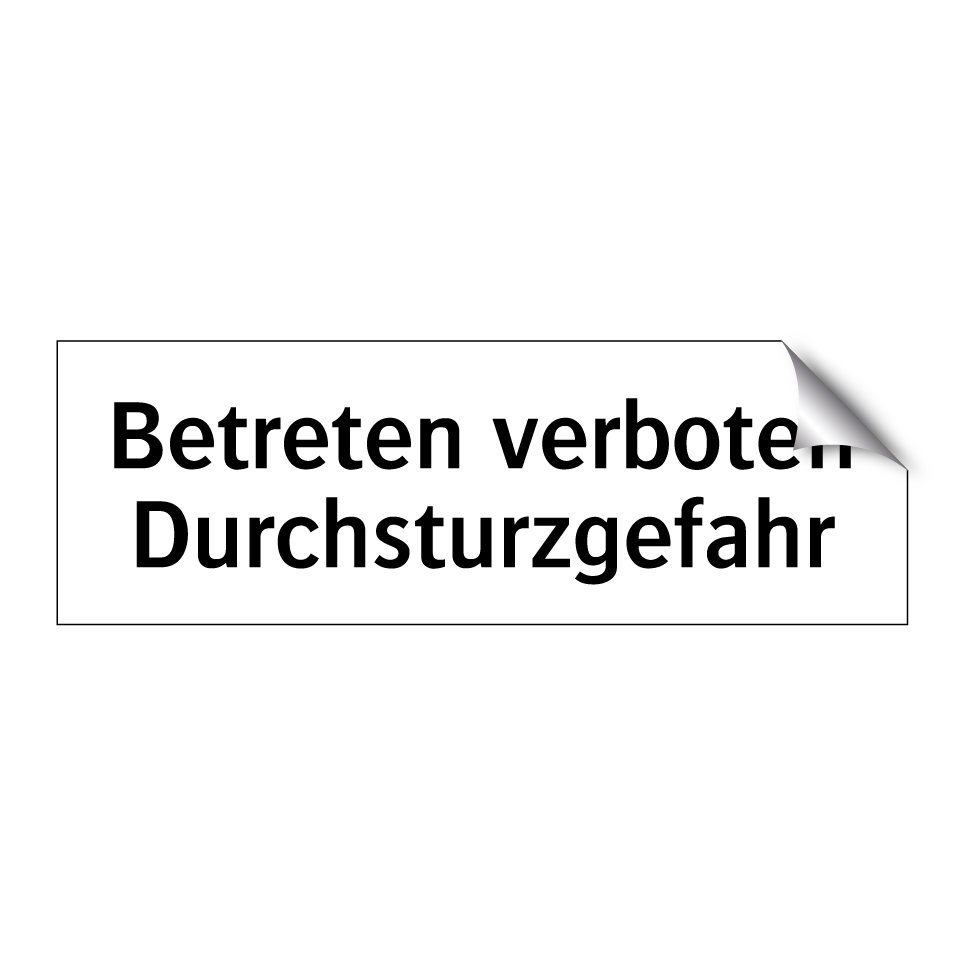 Verbotsschild mit dem Text Betreten verboten Durchsturzgefahr
