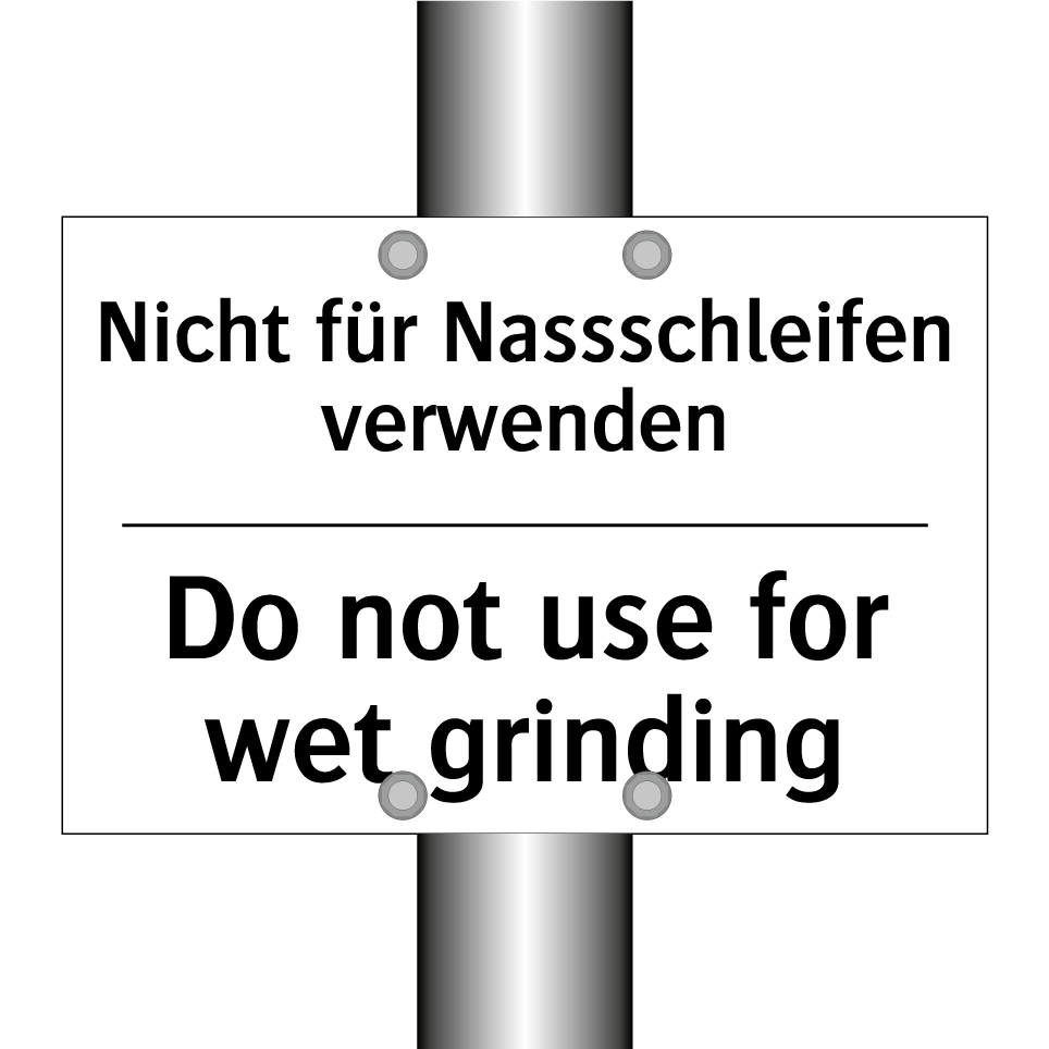 Zweisprachiges Verbotsschild mit deutschem Text Nicht für Nassschleifen verwenden und englischem Text Do not use for wet grinding