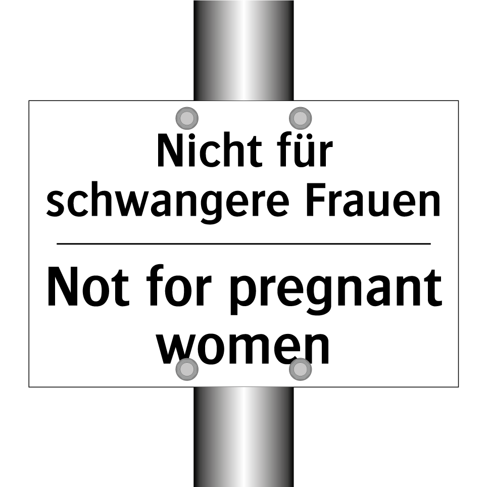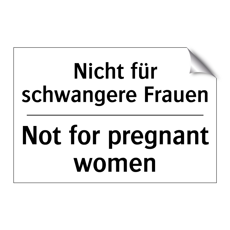 Zweisprachiges Verbotsschild mit deutschem Text Nicht für schwangere Frauen und englischem Text Not for pregnant women