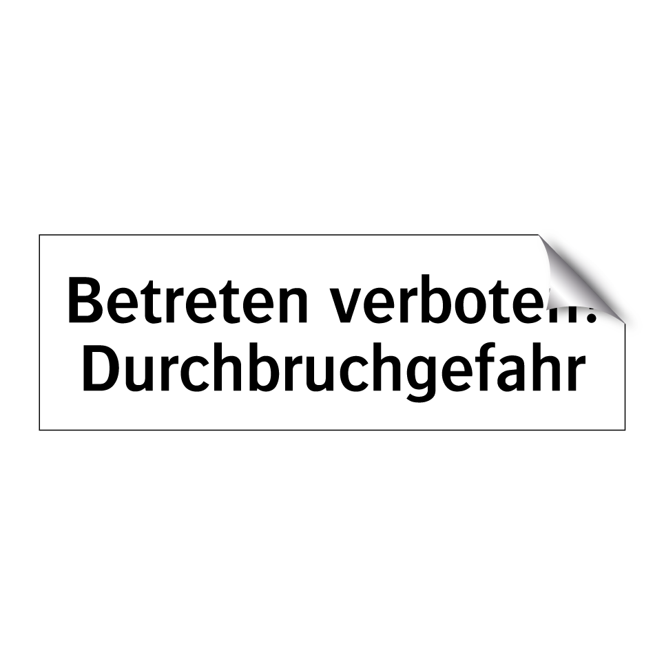 Verbotsschild mit dem Text Betreten verboten! Durchbruchgefahr