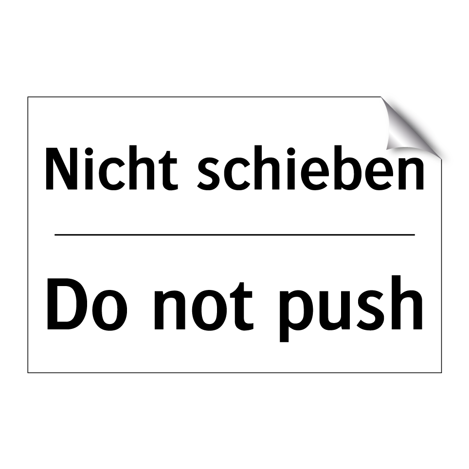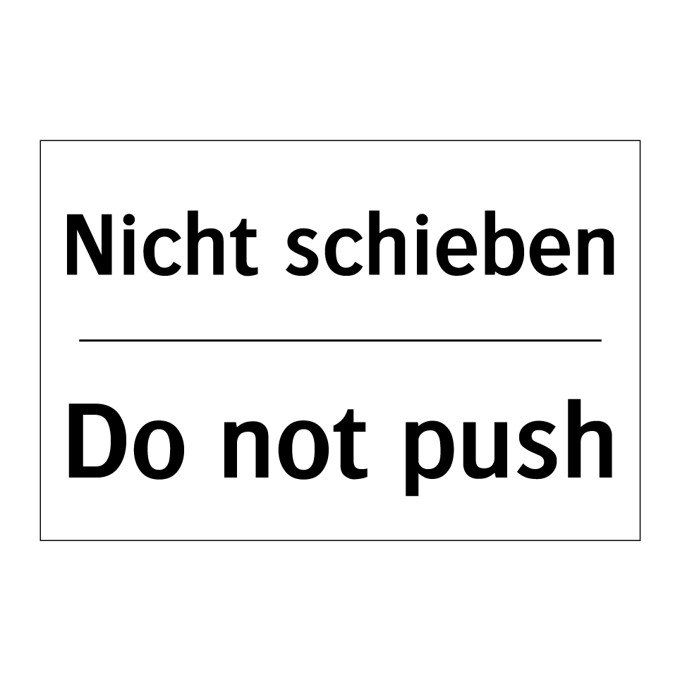 Zweisprachiges Verbotsschild mit deutschem Text Nicht schieben und englischem Text Do not push