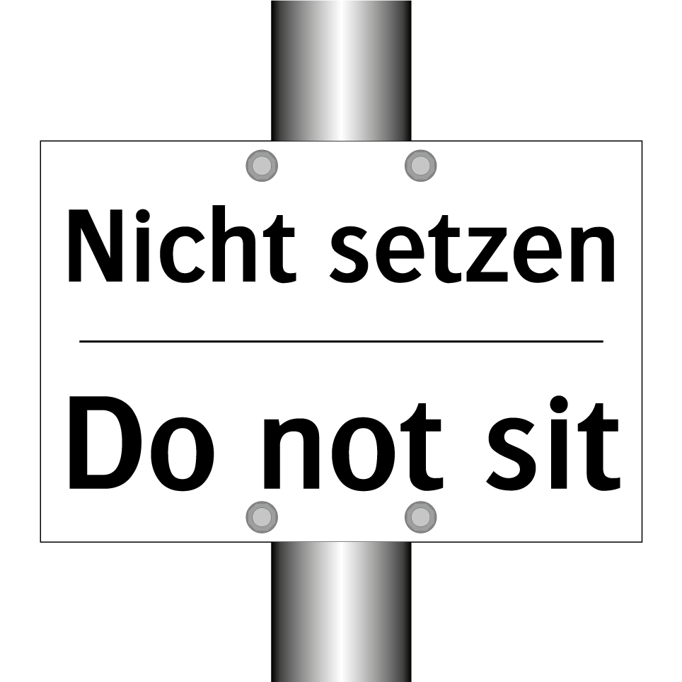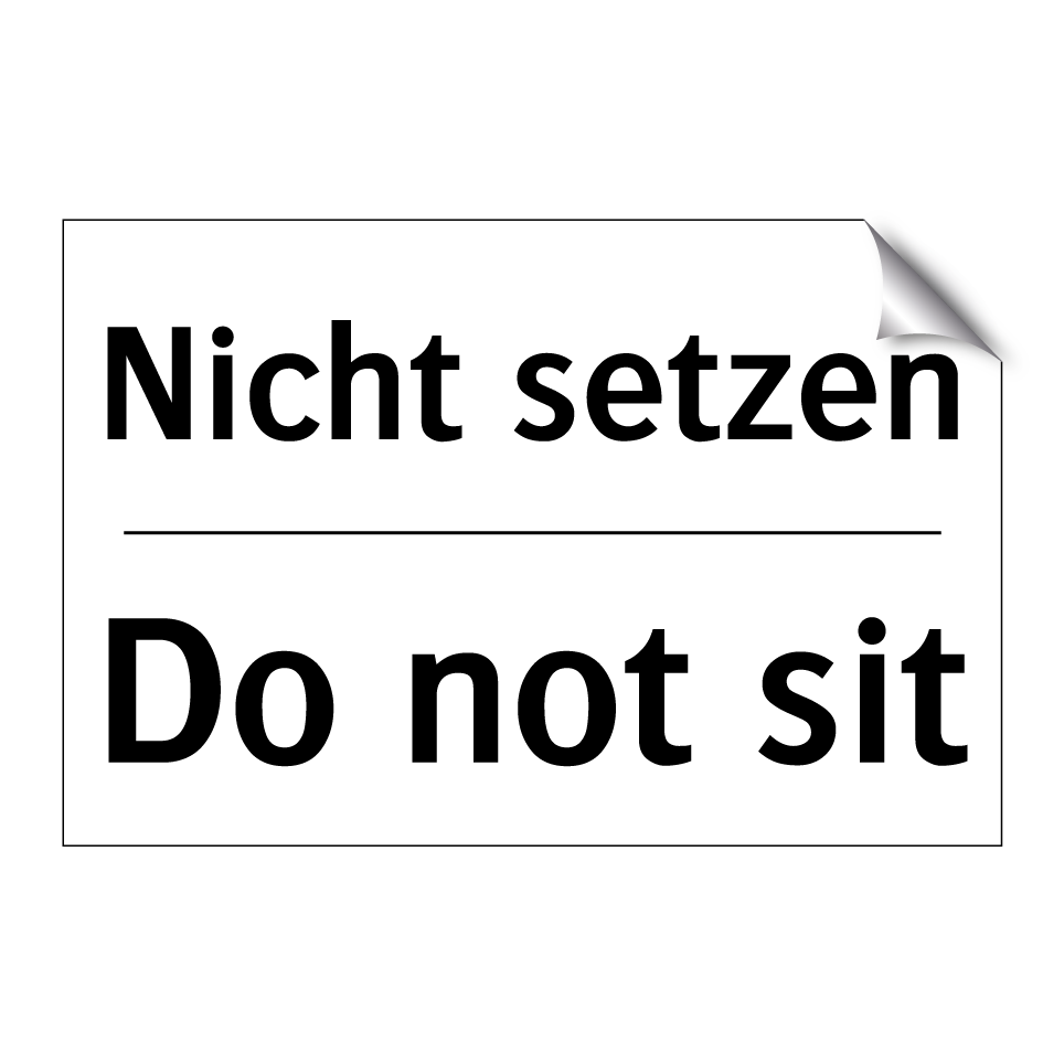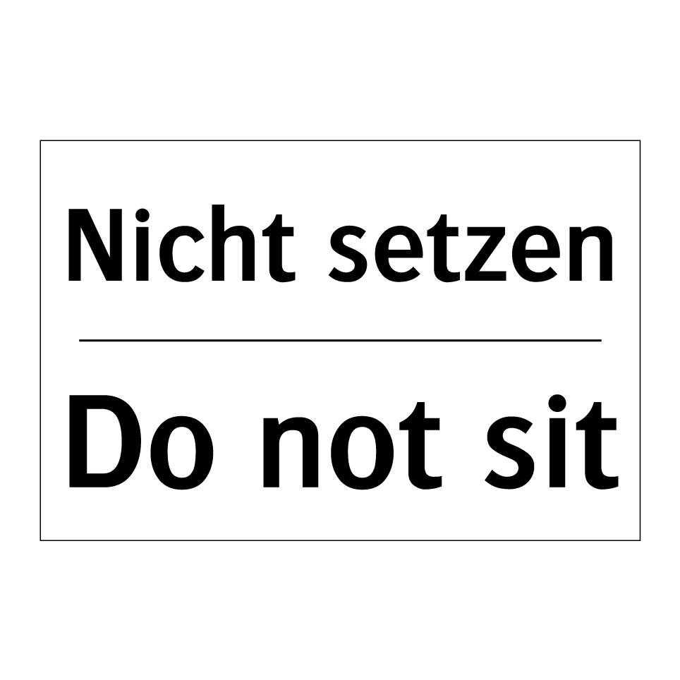 Zweisprachiges Verbotsschild mit deutschem Text Nicht setzen und englischem Text Do not sit