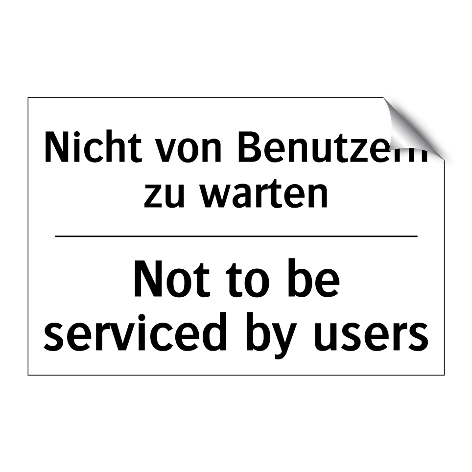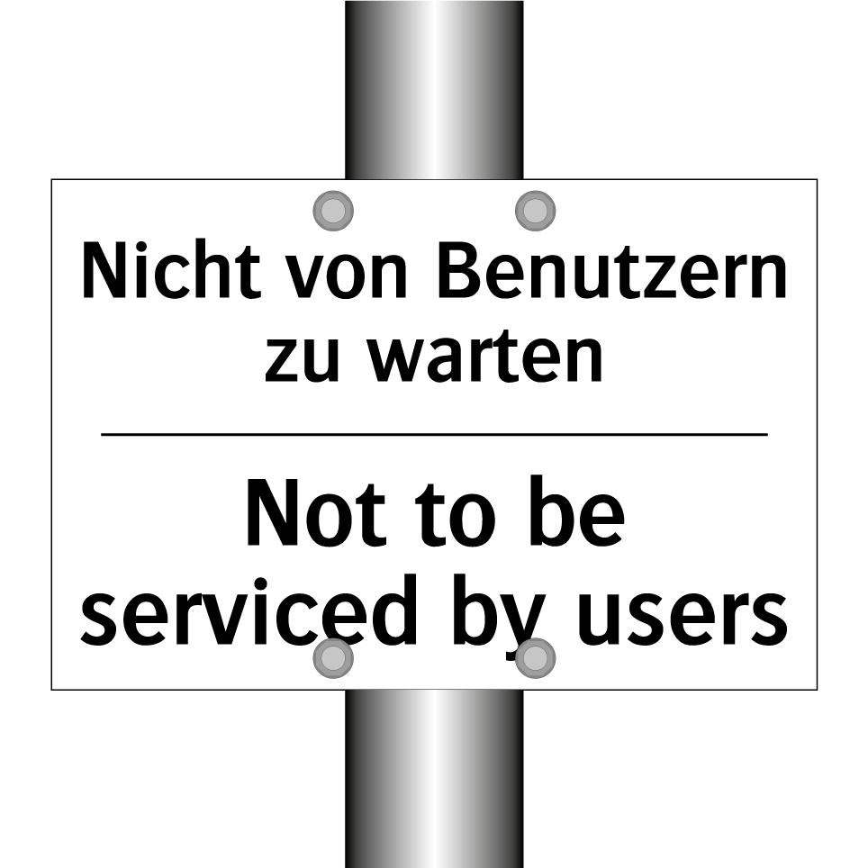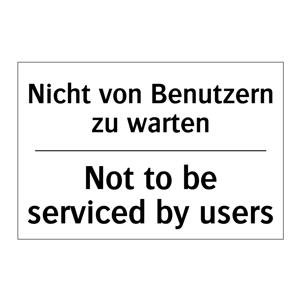 Zweisprachiges Verbotsschild mit deutschem Text Nicht von Benutzern zu warten und englischem Text Not to be serviced by users