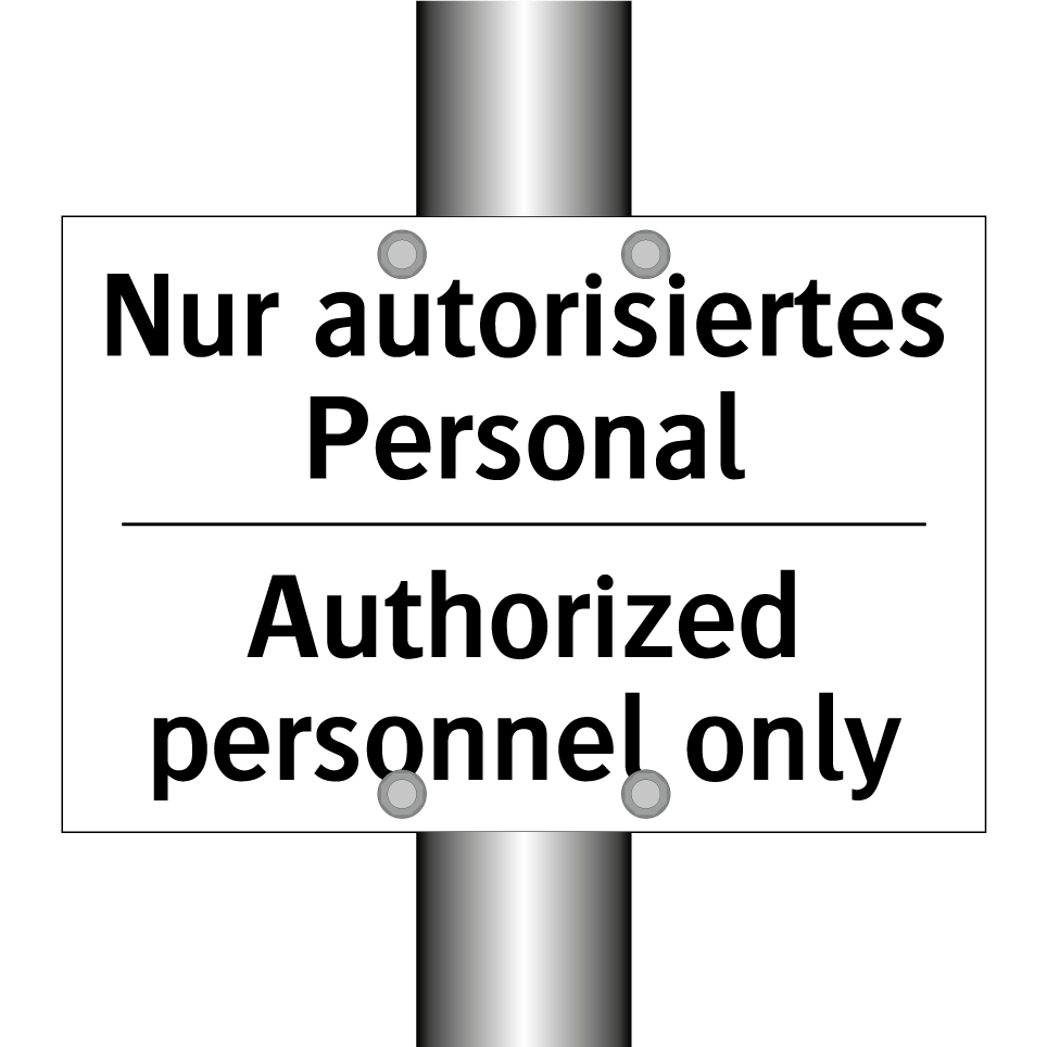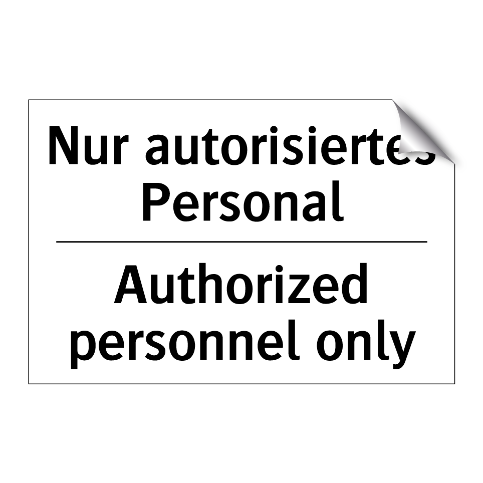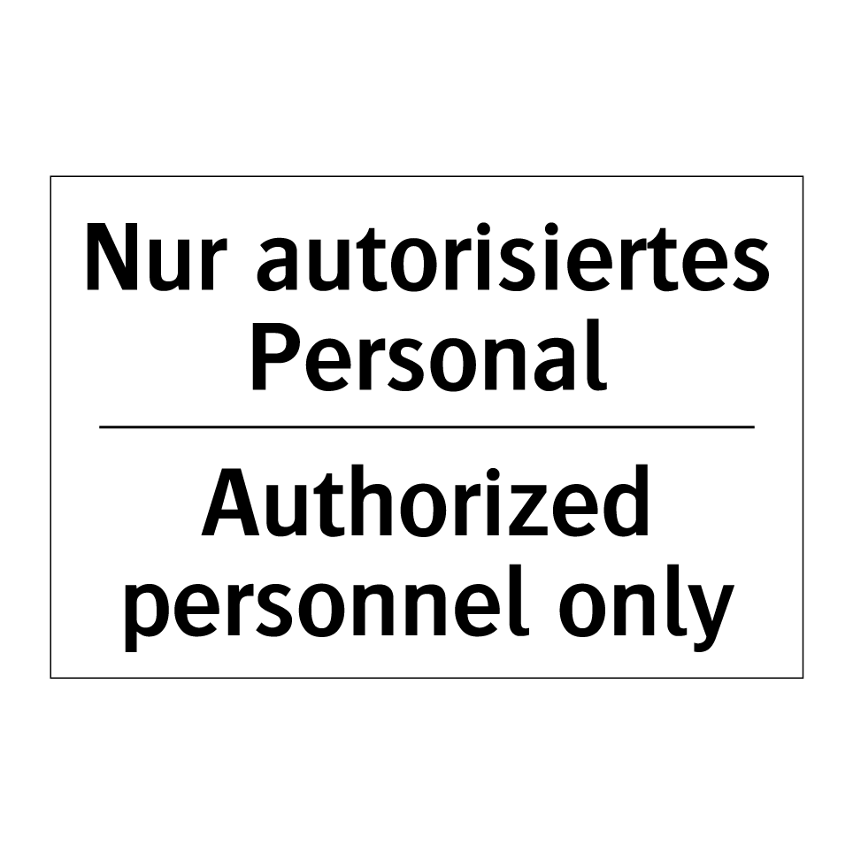 Zweisprachiges Verbotsschild mit deutschem Text Nur autorisiertes Personal und englischem Text Authorized personnel only