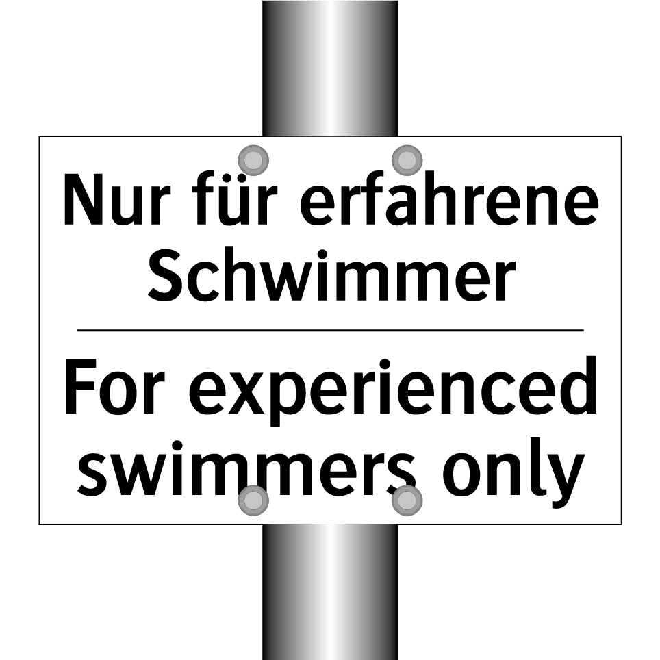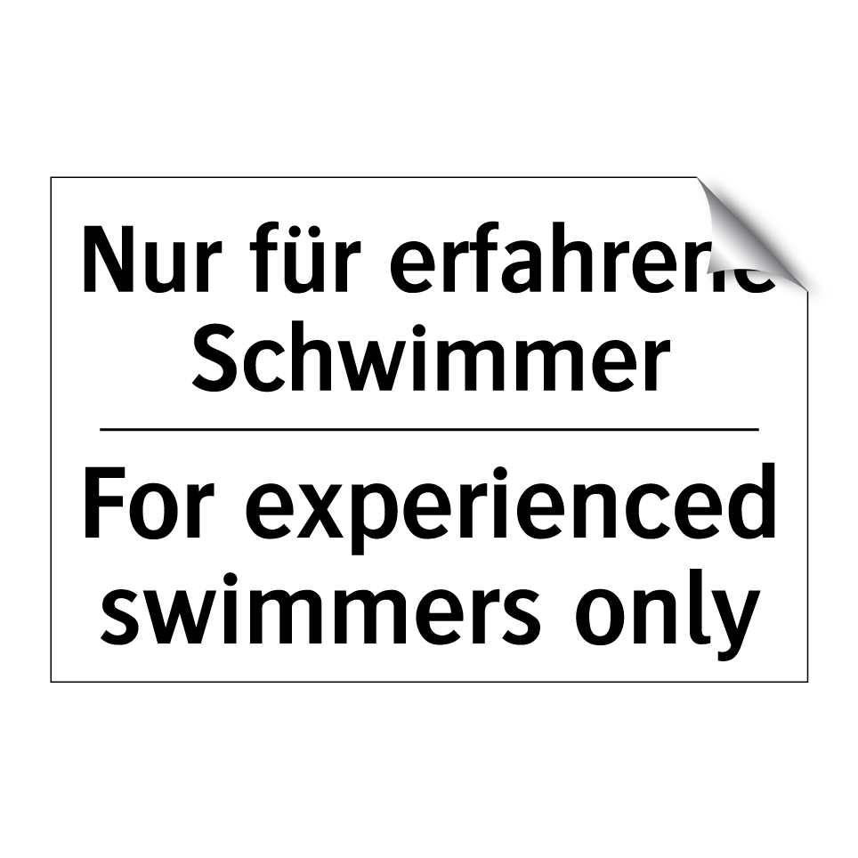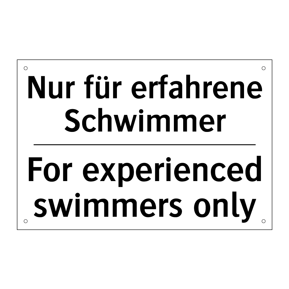 Zweisprachiges Verbotsschild mit deutschem Text Nur für erfahrene Schwimmer und englischem Text For experienced swimmers only