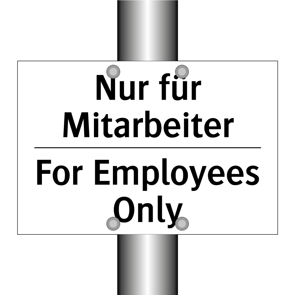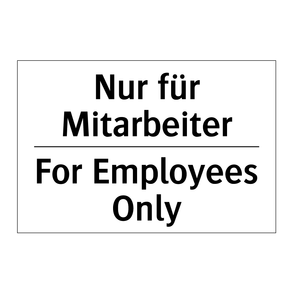 Zweisprachiges Verbotsschild mit deutschem Text Nur für Mitarbeiter und englischem Text For Employees Only