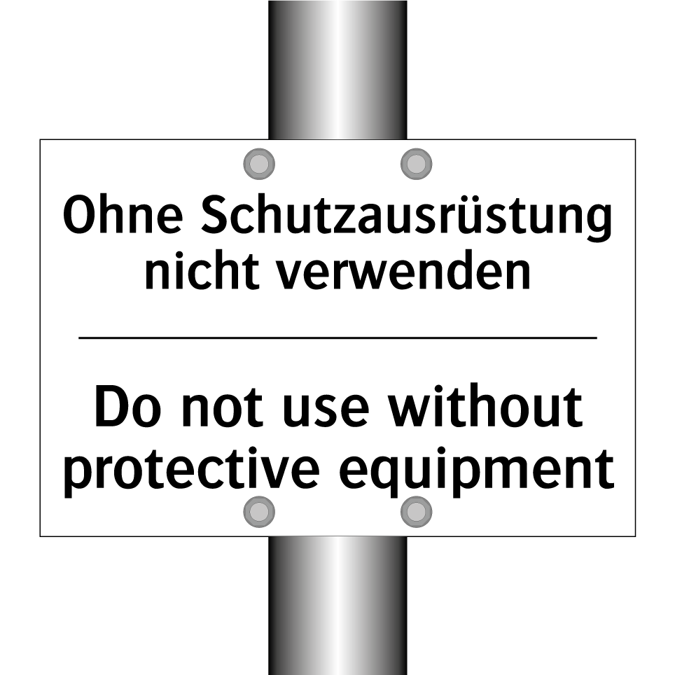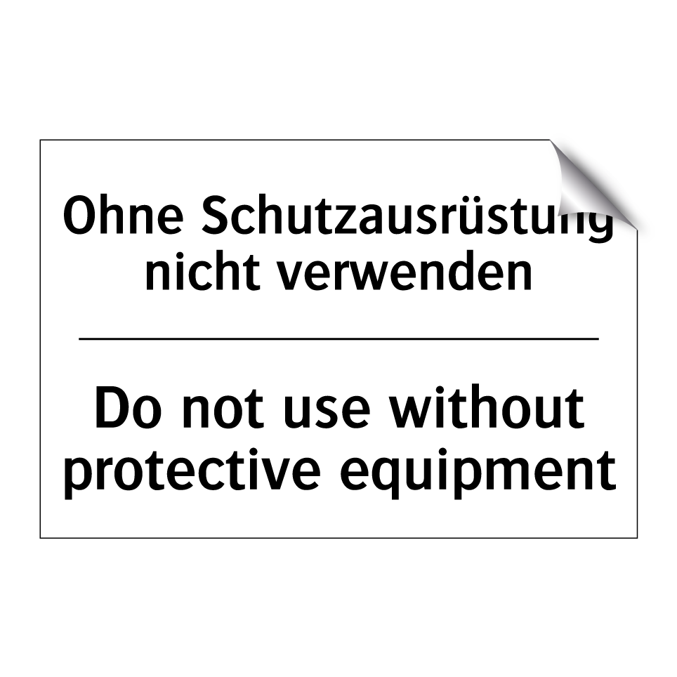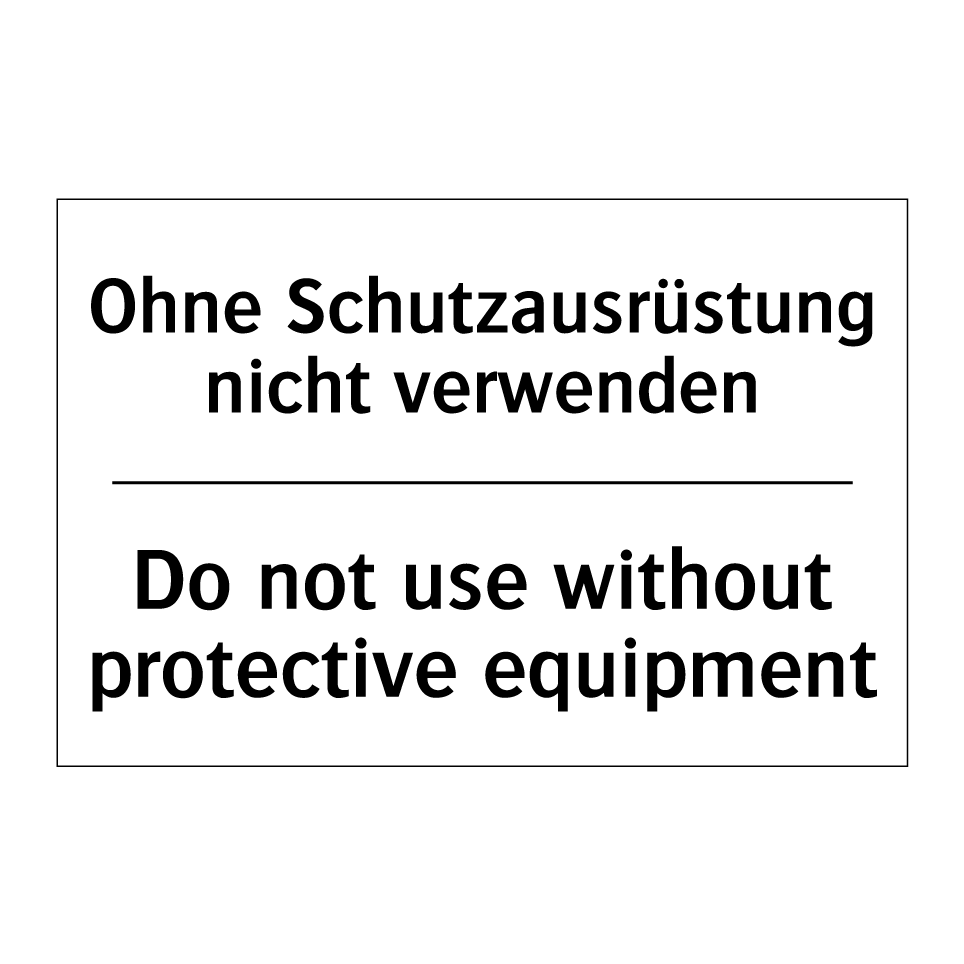 Zweisprachiges Verbotsschild mit deutschem Text Ohne Schutzausrüstung nicht verwenden und englischem Text Do not use without protective equipment