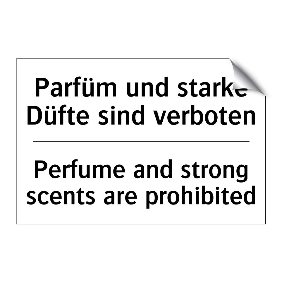 Diese Verbotsschild ist ideal für Umgebungen, in denen ein duftfreies Umfeld erforderlich ist. Mit ihrer klaren Botschaft in deutscher und englischer Sprache sorgt sie dafür, dass alle Besucher und Mitarbeiter die Regelung verstehen. Die zweisprachige Gestaltung erhöht die Verständlichkeit und ist besonders nützlich in internationalen oder mehrsprachigen Umgebungen. Diese Verbotsschilder sind perfekt für Büros, Schulen, Gesundheitseinrichtungen oder öffentliche Gebäude, wo starke Düfte unerwünscht sind. Platzieren Sie die Verbotsschild an Eingängen, in Fluren oder in Wartebereichen, um sicherzustellen, dass die Duftregelung respektiert wird. Die klare und prägnante Darstellung macht es einfach, die Duftpolitik durchzusetzen.