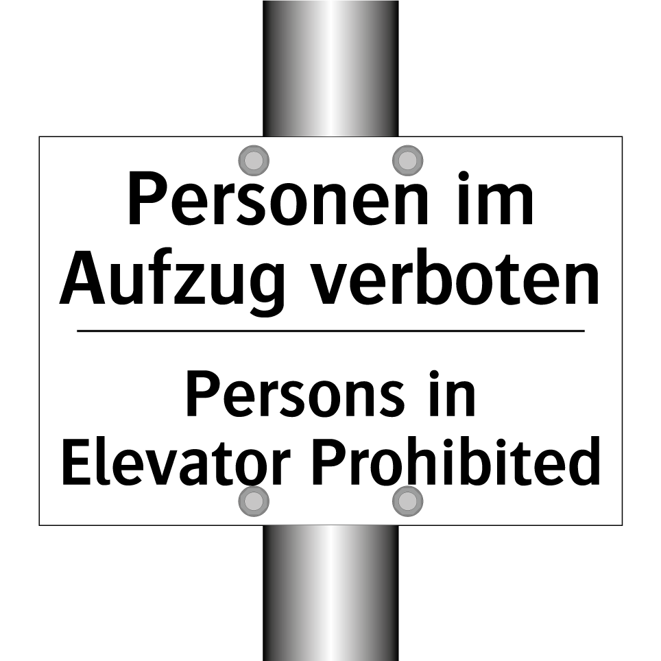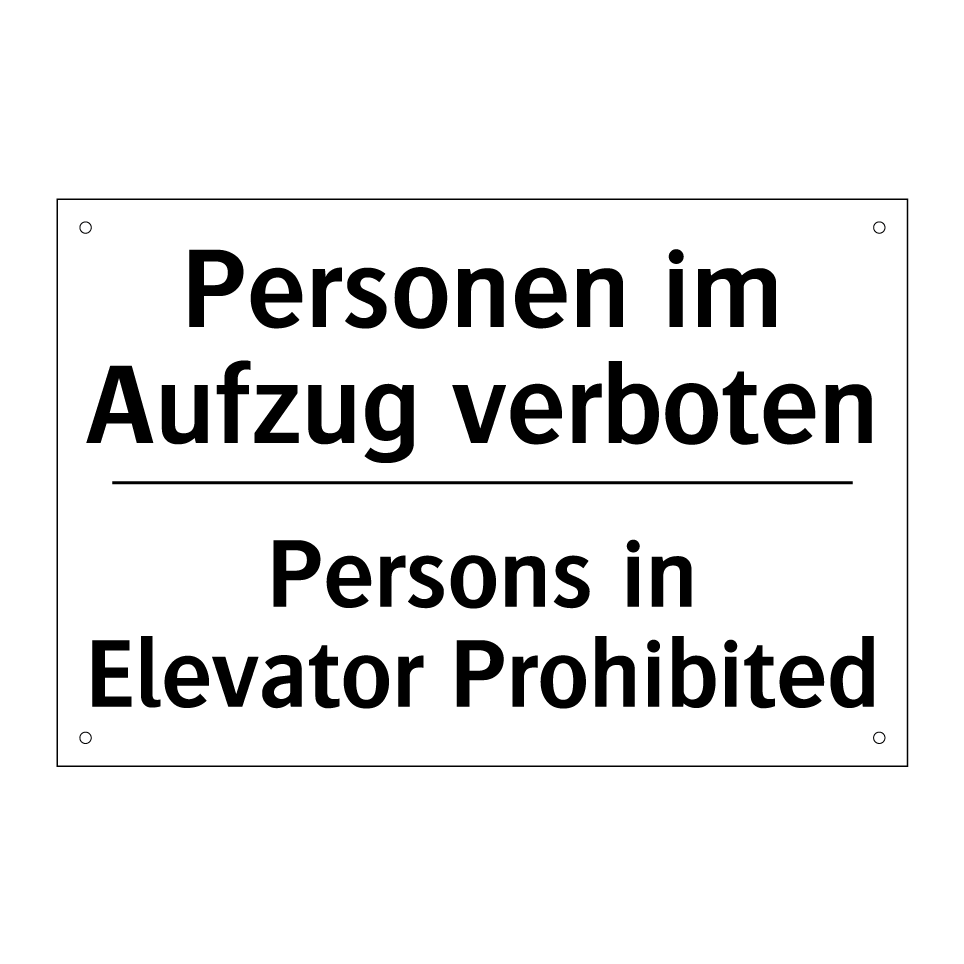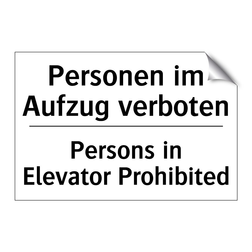 Zweisprachiges Verbotsschild mit deutschem Text Personen im Aufzug verboten und englischem Text Persons in Elevator Prohibited