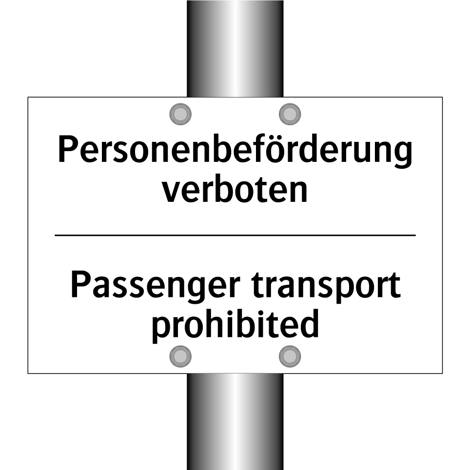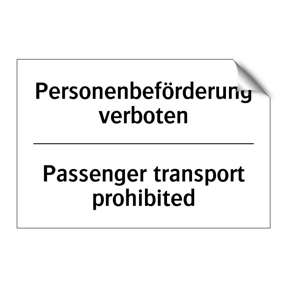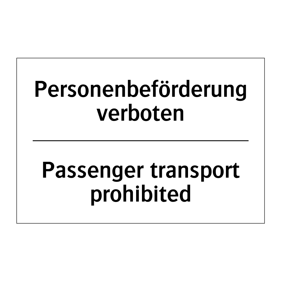 Zweisprachiges Verbotsschild mit deutschem Text Personenbeförderung verboten und englischem Text Passenger transport prohibited