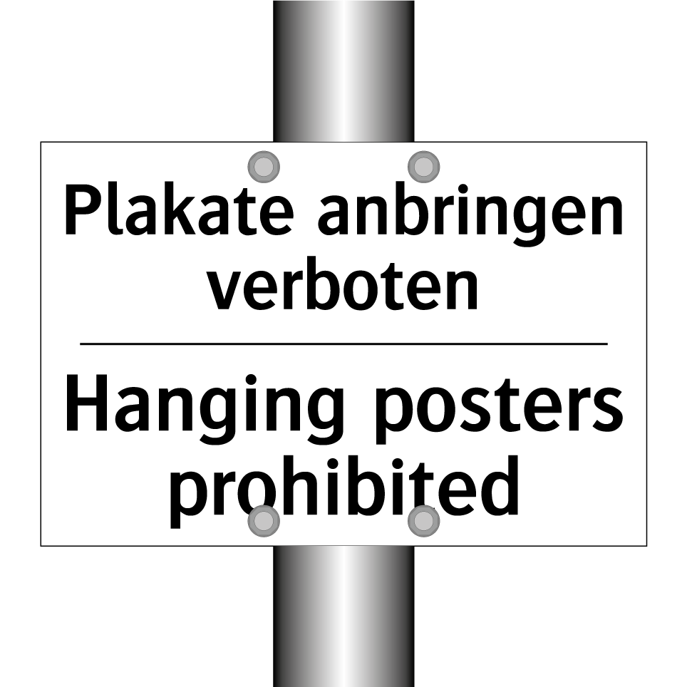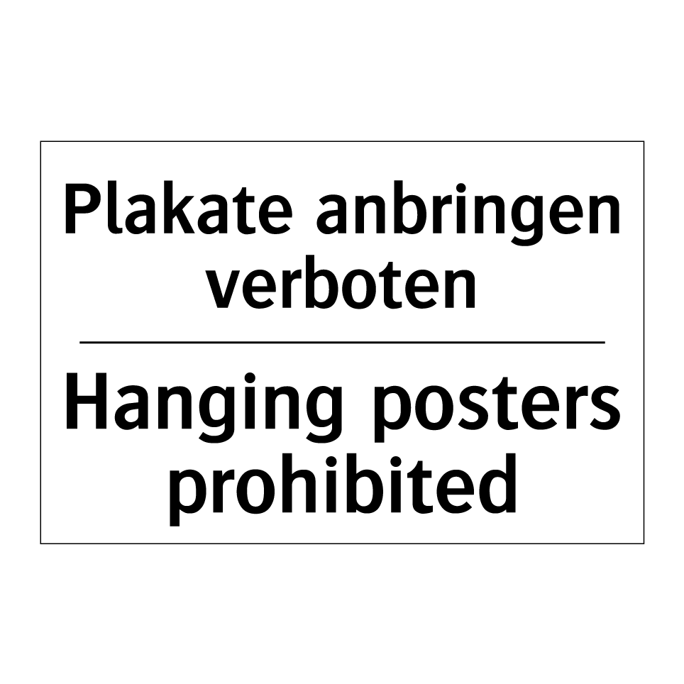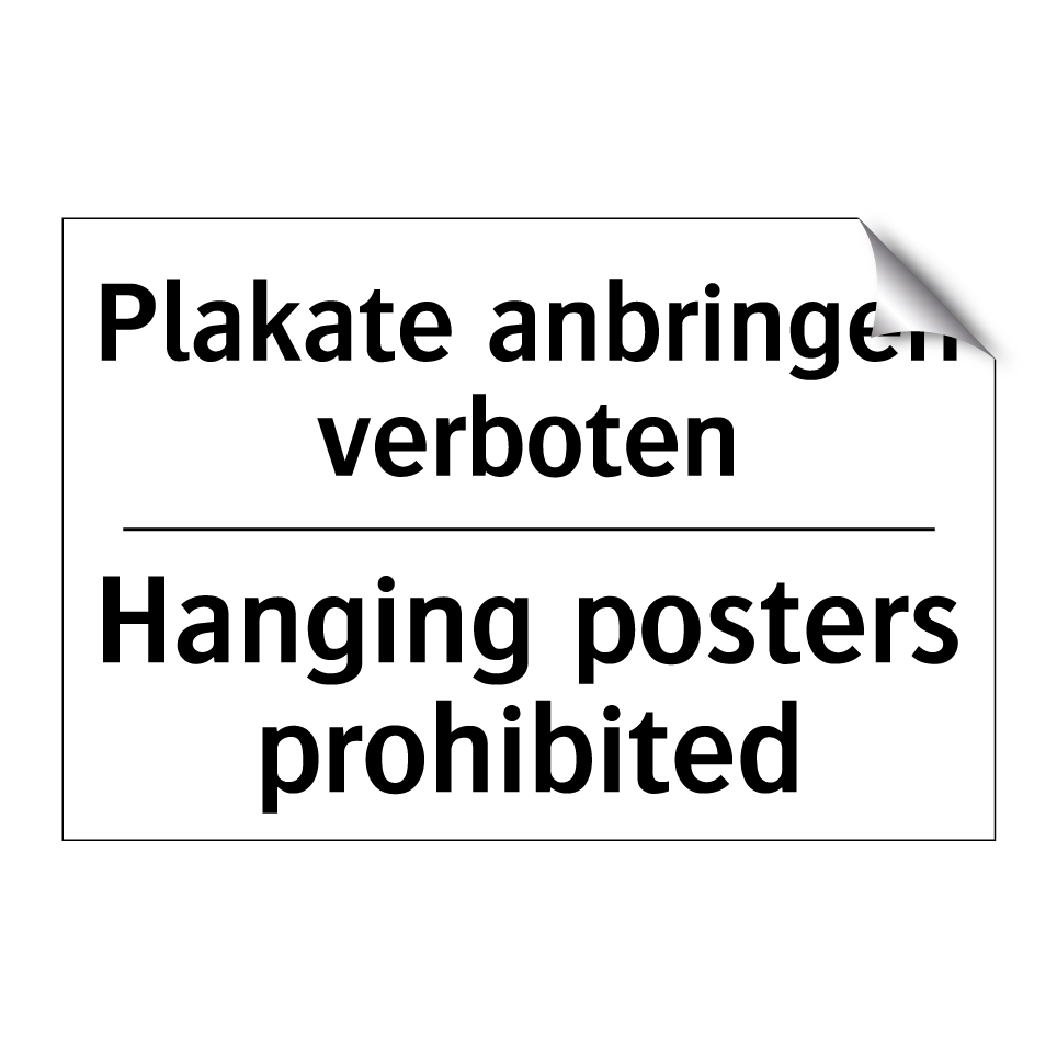 Zweisprachiges Verbotsschild mit deutschem Text Plakate anbringen verboten und englischem Text Hanging posters prohibited