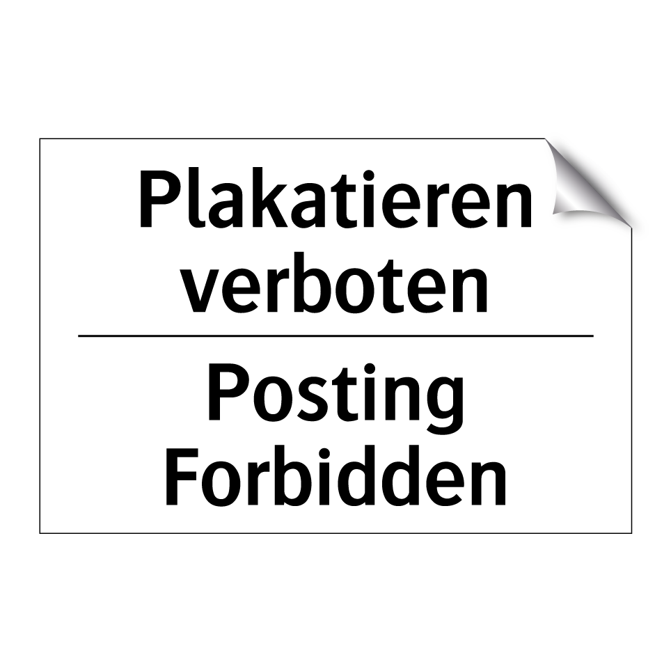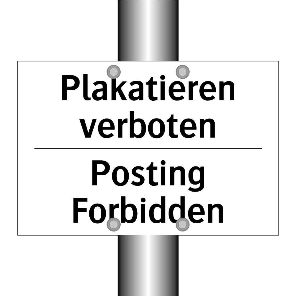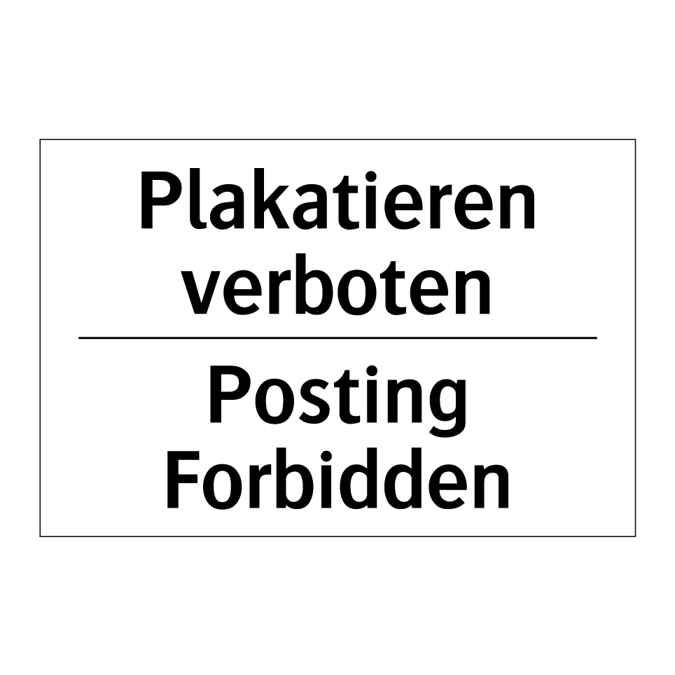 Zweisprachiges Verbotsschild mit deutschem Text Plakatieren verboten und englischem Text Posting Forbidden