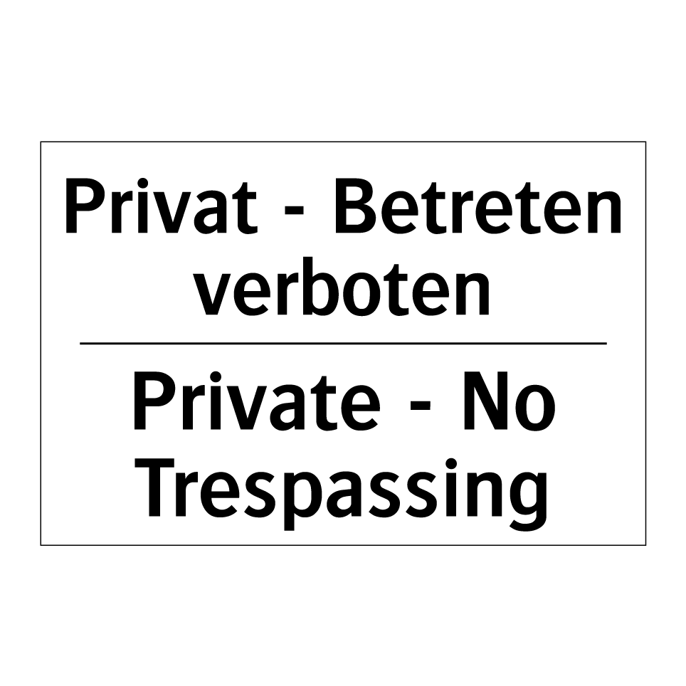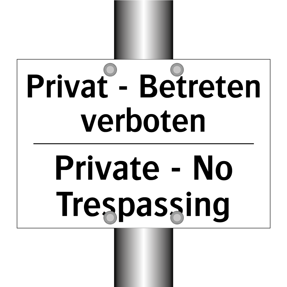 Zweisprachiges Verbotsschild mit deutschem Text Privat - Betreten verboten und englischem Text Private - No Trespassing