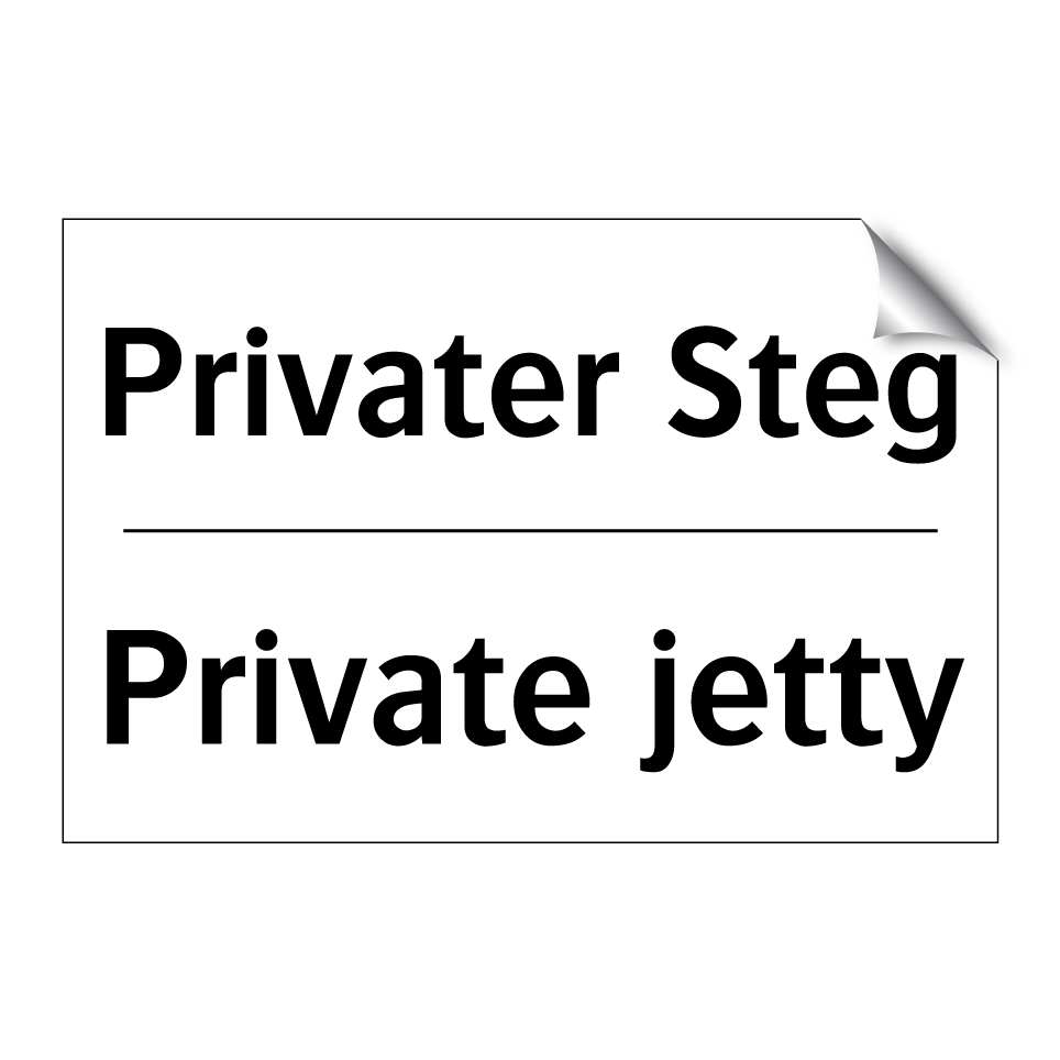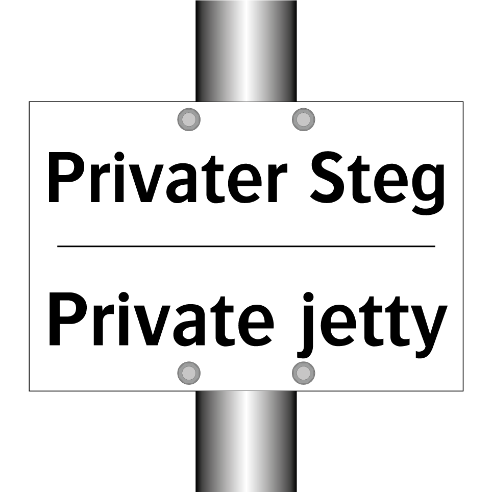 Zweisprachiges Verbotsschild mit deutschem Text Privater Steg und englischem Text Private jetty