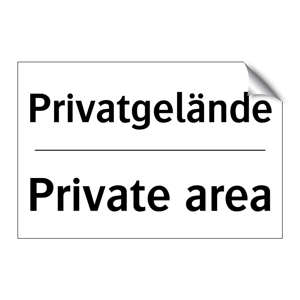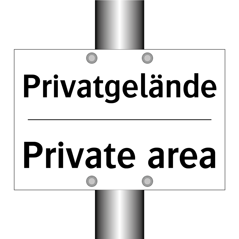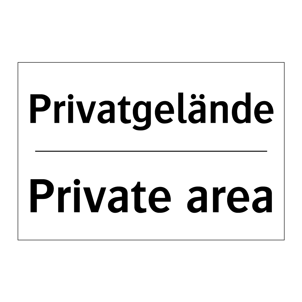 Zweisprachiges Verbotsschild mit deutschem Text Privatgelände und englischem Text Private area