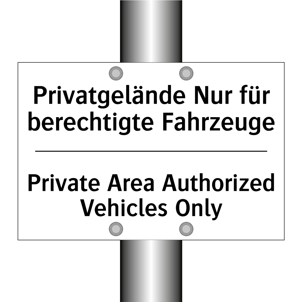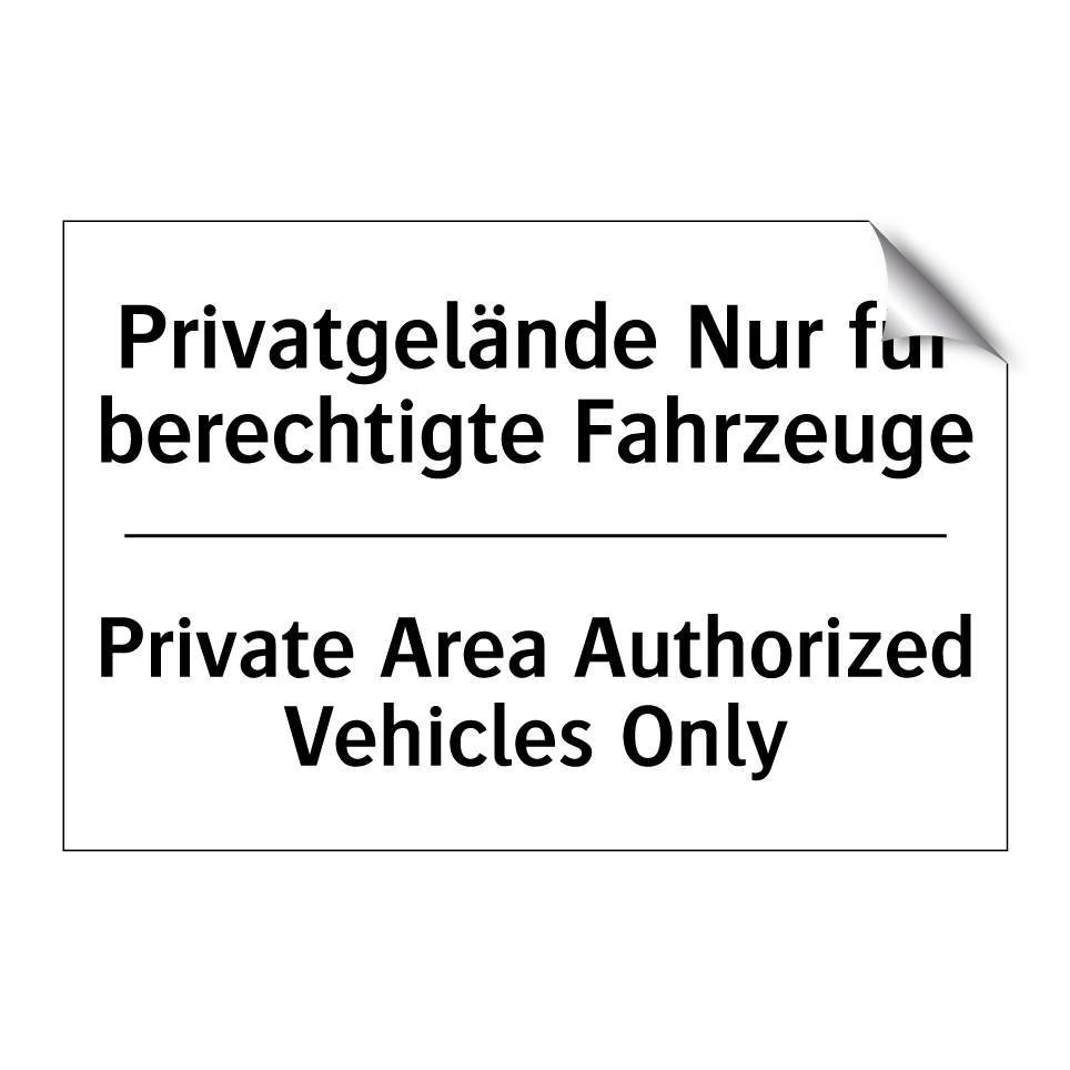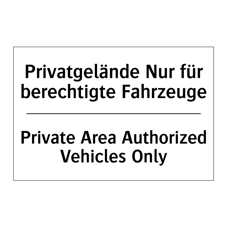 Zweisprachiges Verbotsschild mit deutschem Text Privatgelände Nur für berechtigte Fahrzeuge und englischem Text Private Area Authorized Vehicles Only