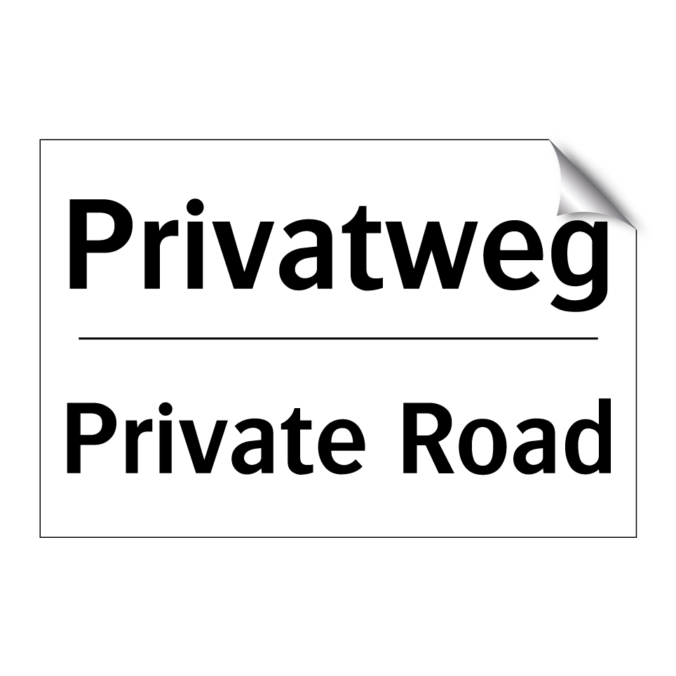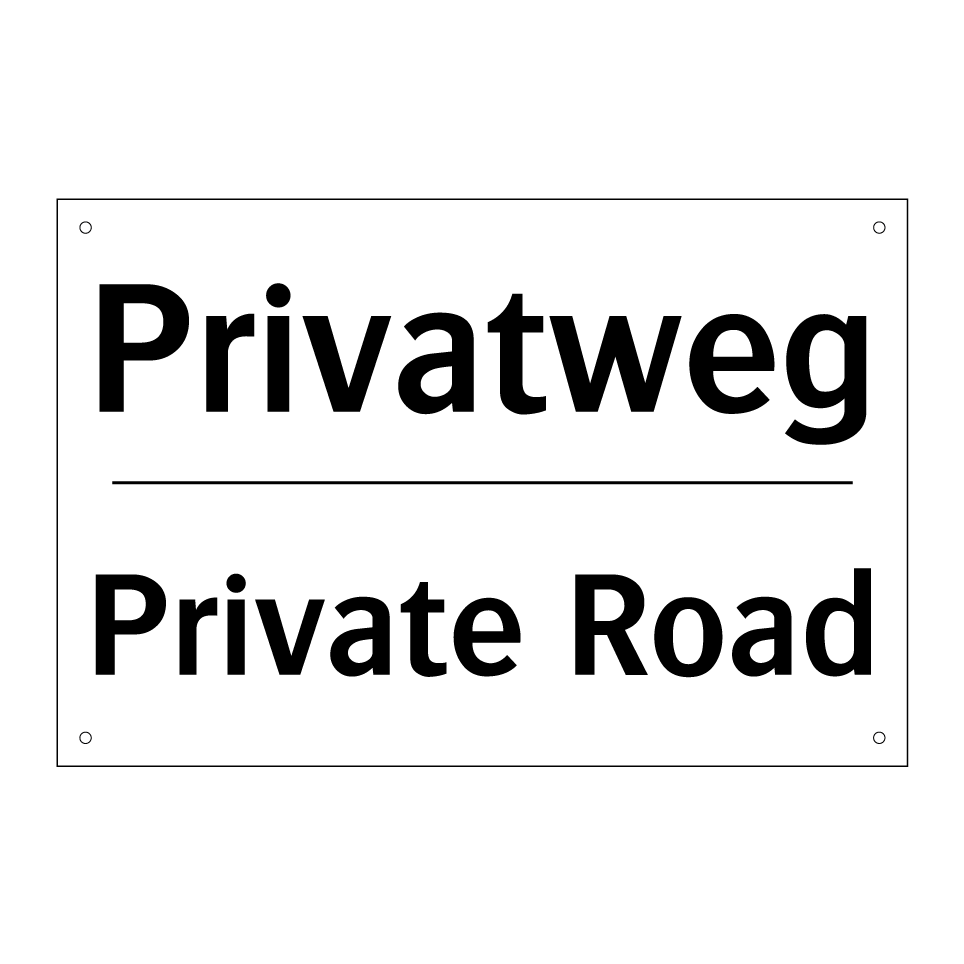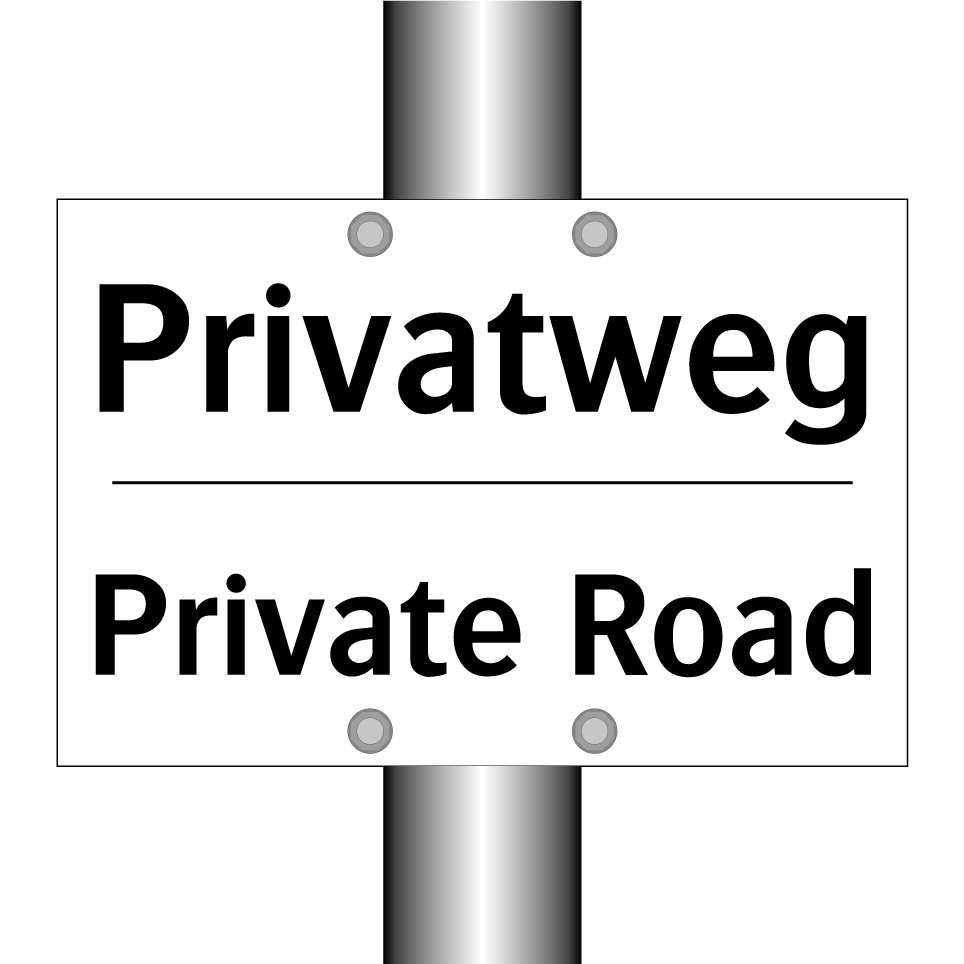 Zweisprachiges Verbotsschild mit deutschem Text Privatweg und englischem Text Private Road