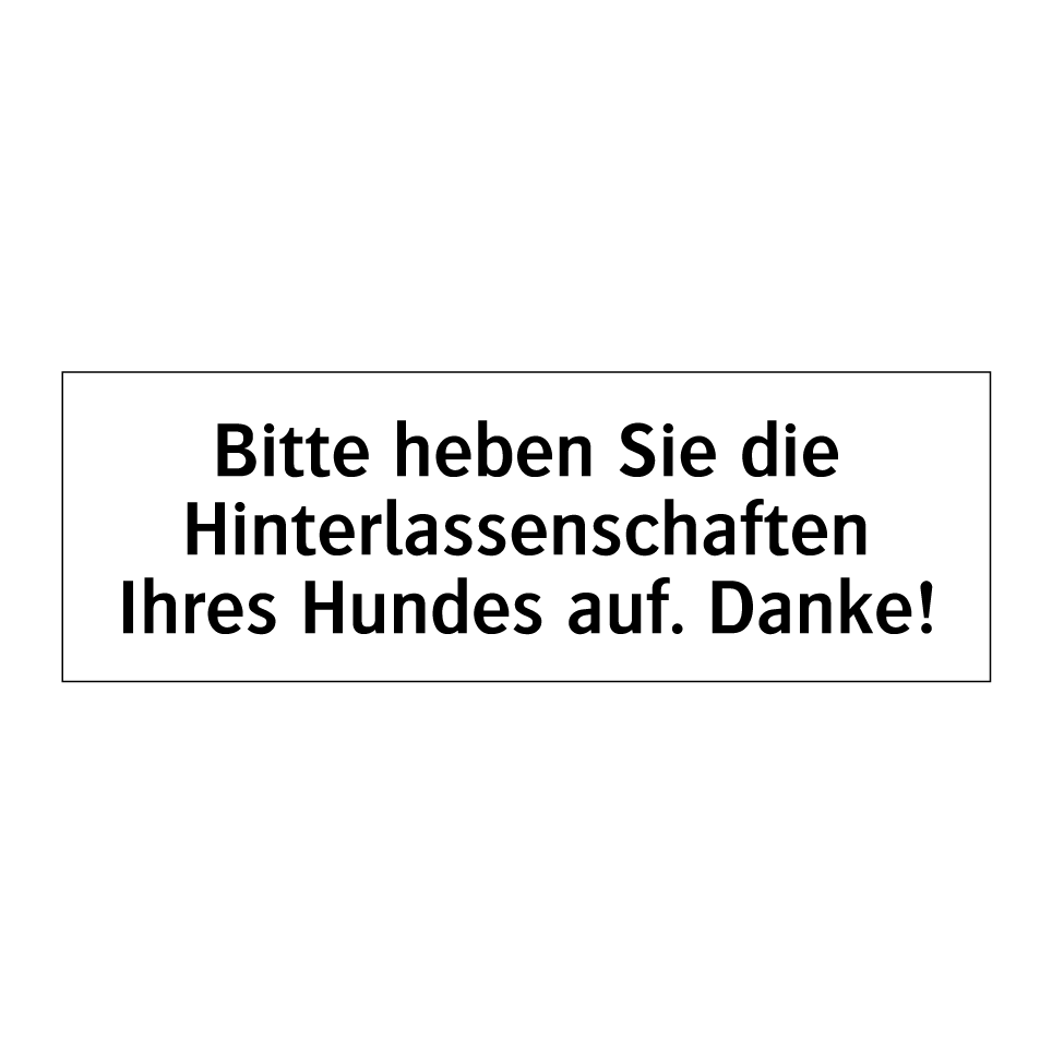 Verbotsschild mit dem Text Bitte heben Sie die Hinterlassenschaften Ihres Hundes auf. Danke!
