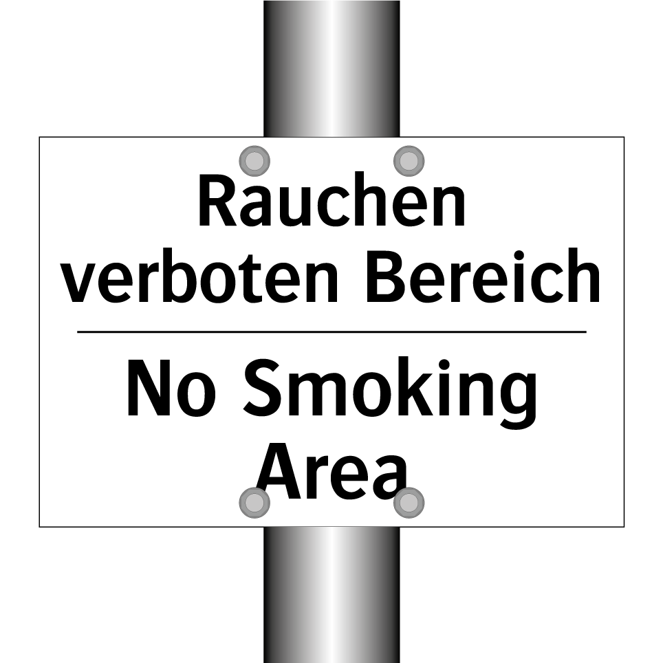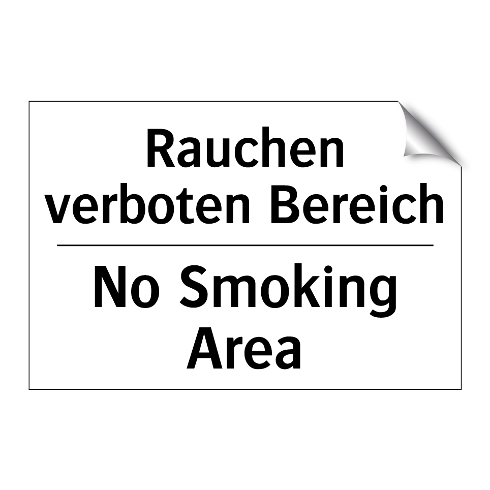 Zweisprachiges Verbotsschild mit deutschem Text Rauchen verboten Bereich und englischem Text No Smoking Area
