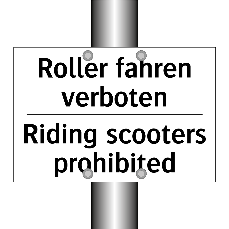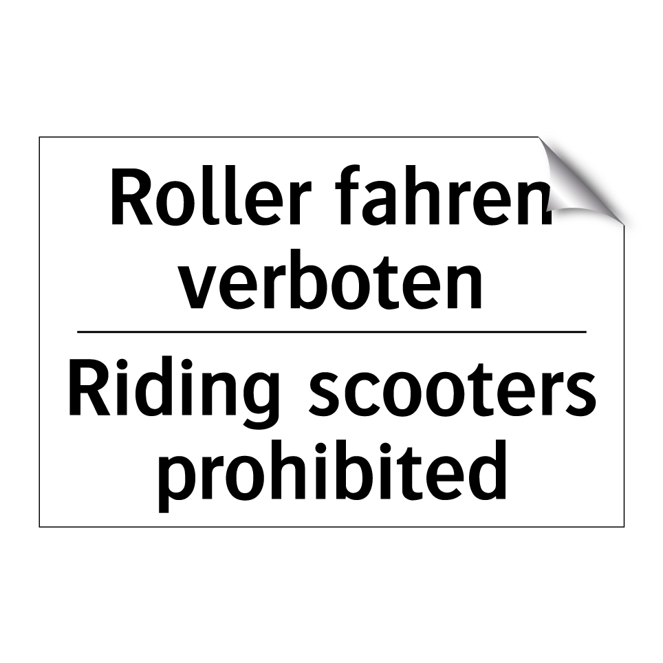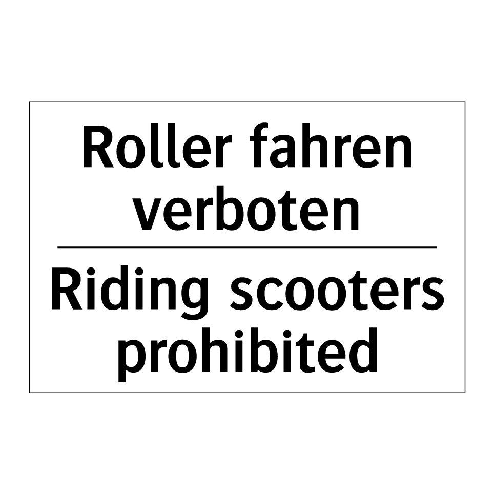 Zweisprachiges Verbotsschild mit deutschem Text Roller fahren verboten und englischem Text Riding scooters prohibited