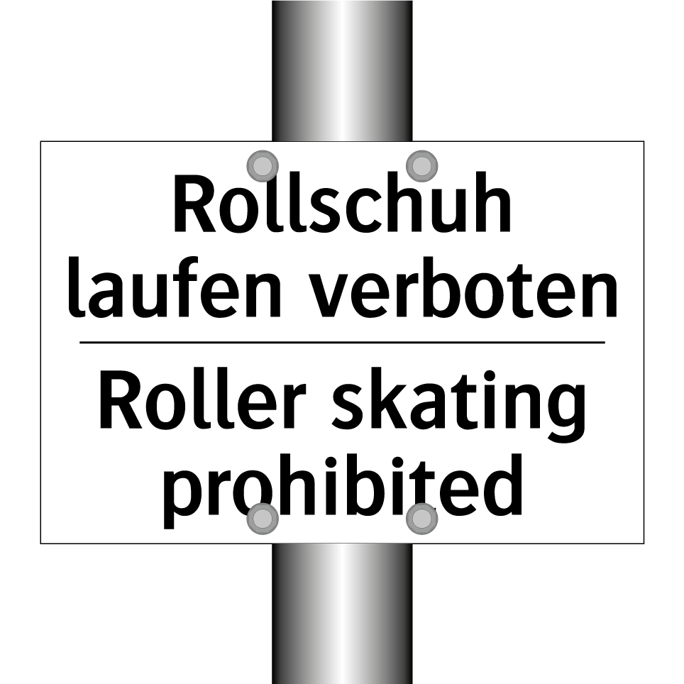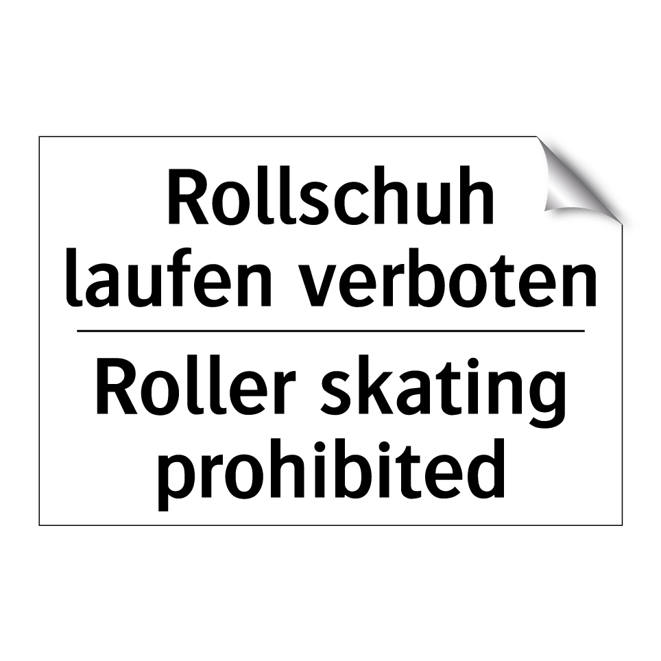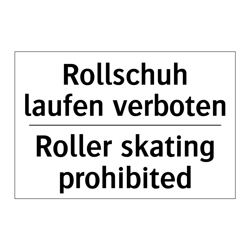 Zweisprachiges Verbotsschild mit deutschem Text Rollschuh laufen verboten und englischem Text Roller skating prohibited