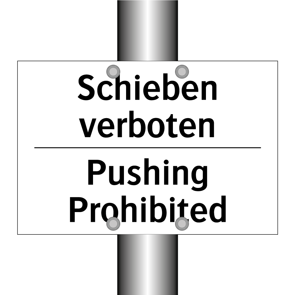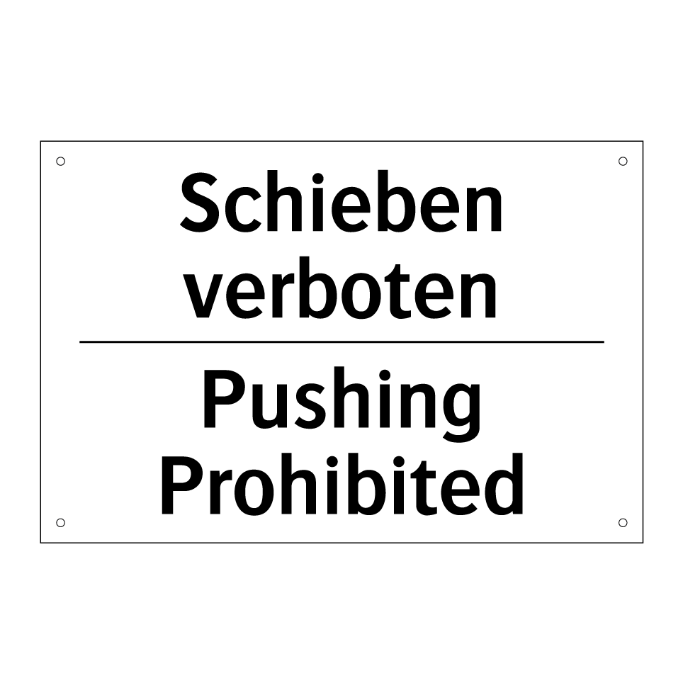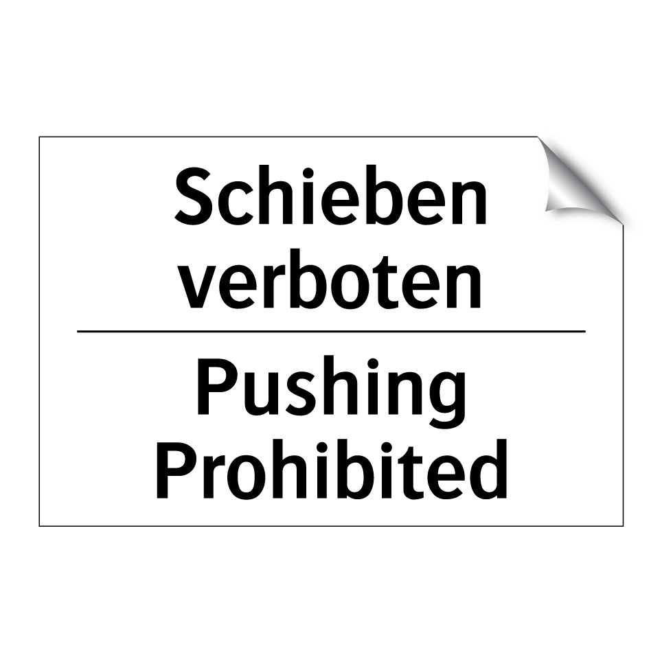 Zweisprachiges Verbotsschild mit deutschem Text Schieben verboten und englischem Text Pushing Prohibited