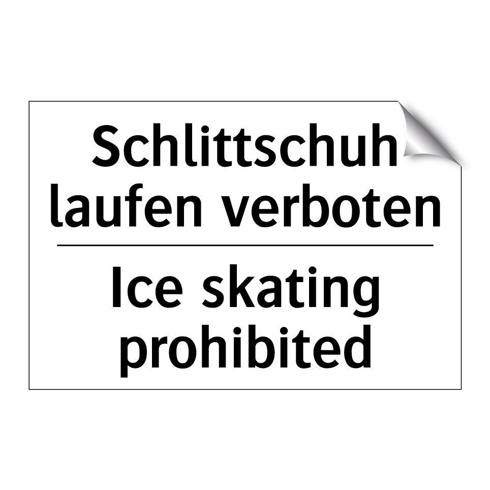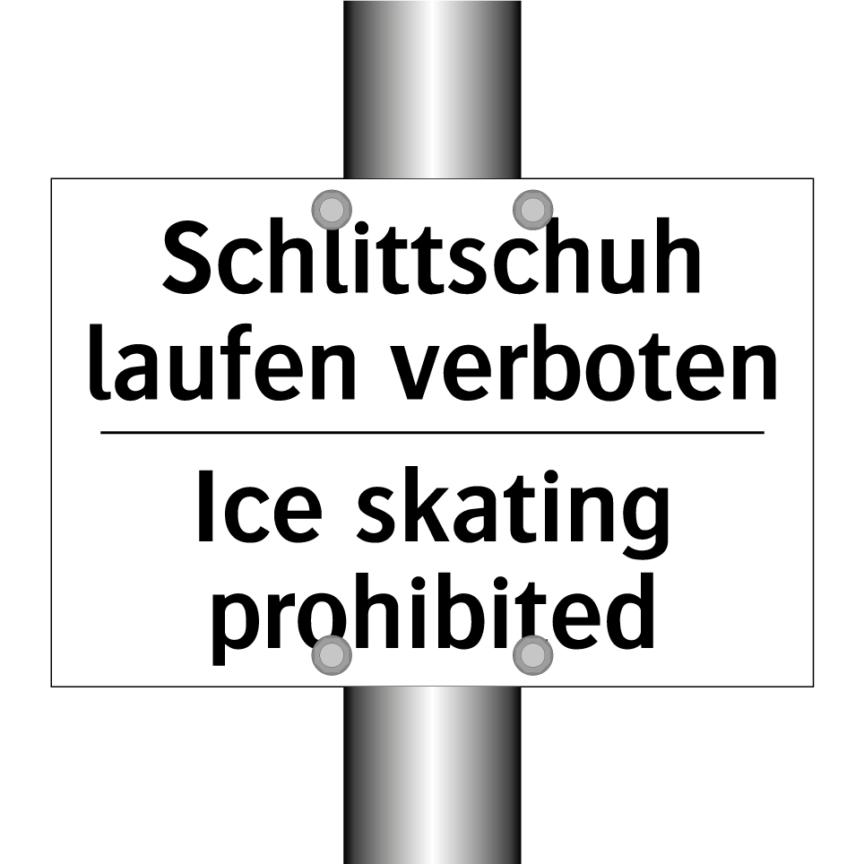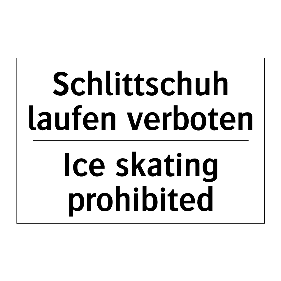Zweisprachiges Verbotsschild mit deutschem Text Schlittschuh laufen verboten und englischem Text Ice skating prohibited