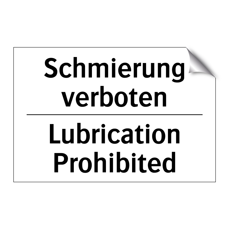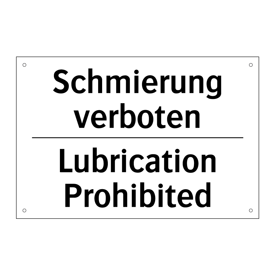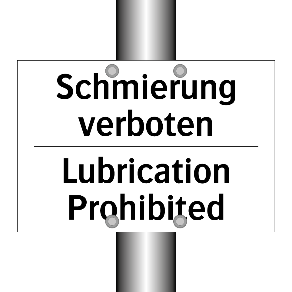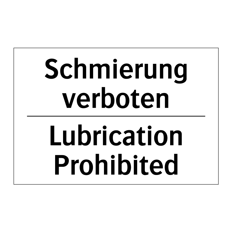 Zweisprachiges Verbotsschild mit deutschem Text Schmierung verboten und englischem Text Lubrication Prohibited