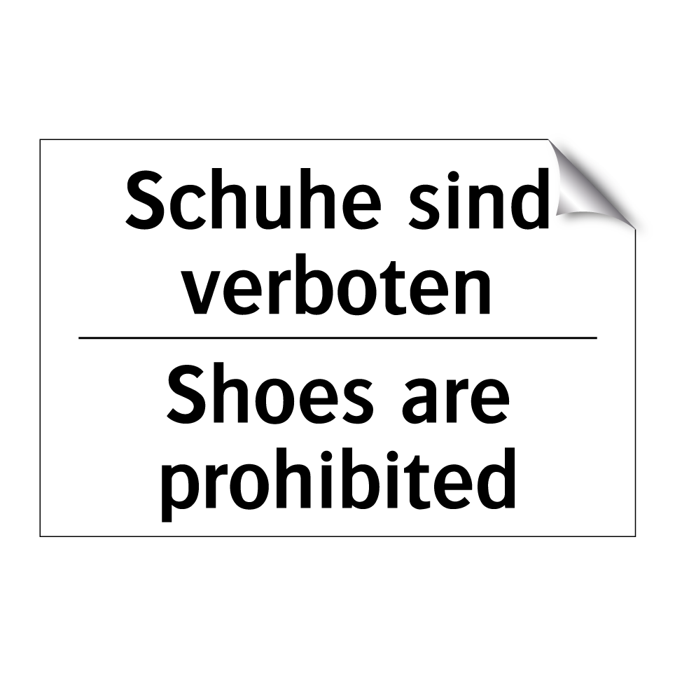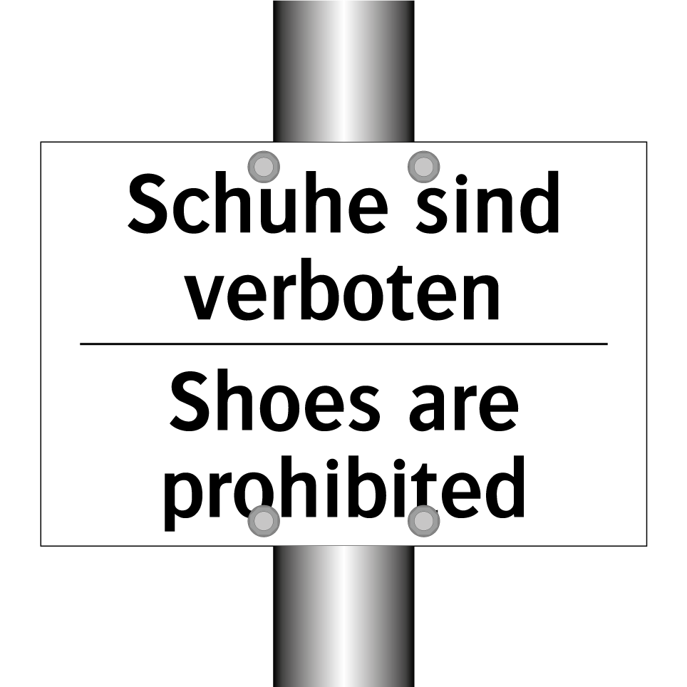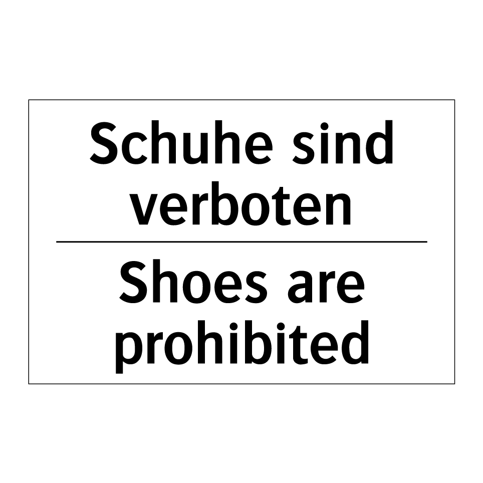 Zweisprachiges Verbotsschild mit deutschem Text Schuhe sind verboten und englischem Text Shoes are prohibited