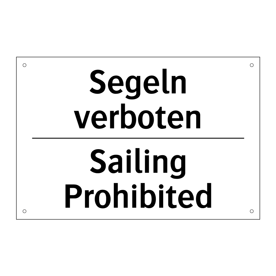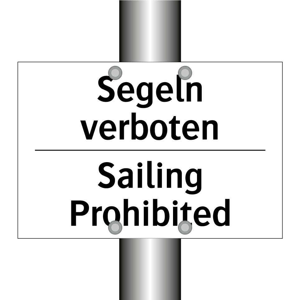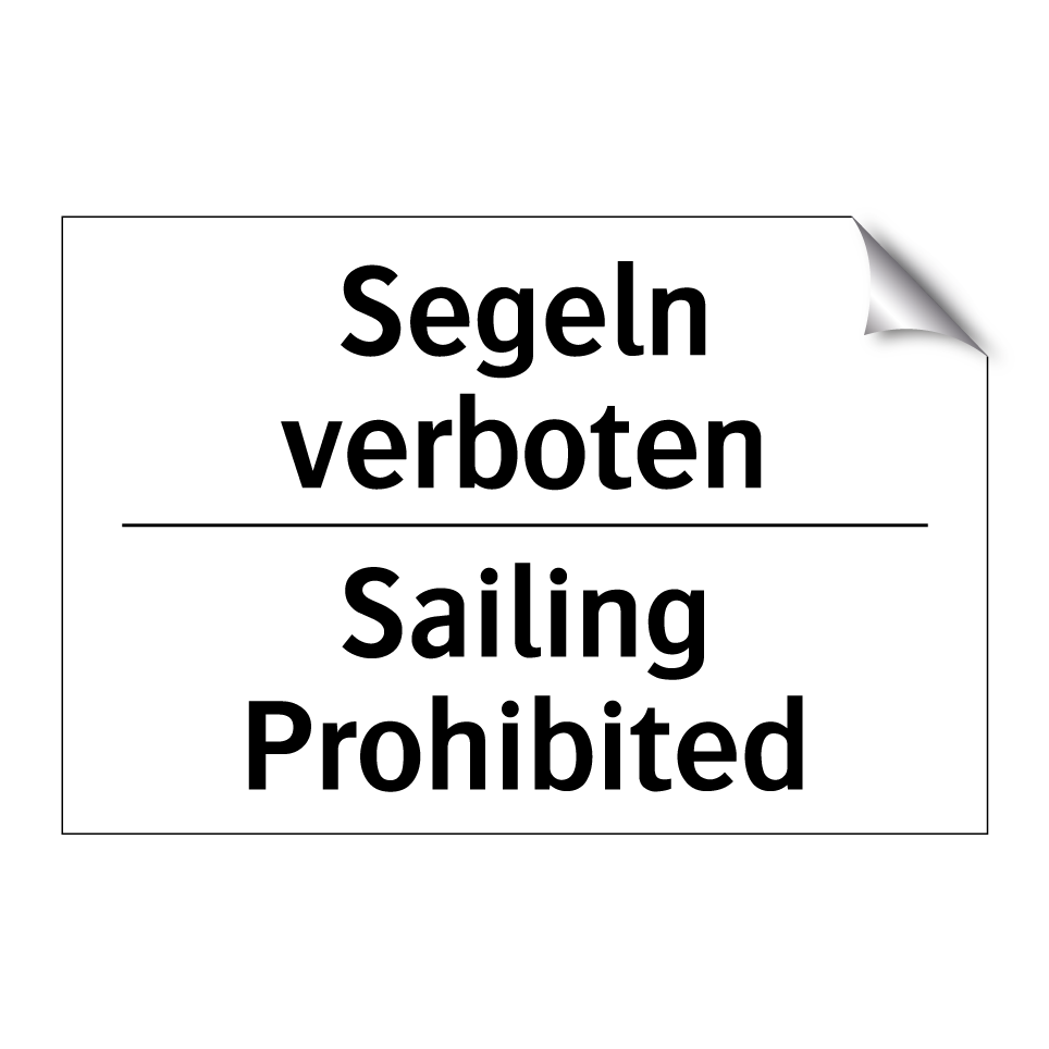 Zweisprachiges Verbotsschild mit deutschem Text Segeln verboten und englischem Text Sailing Prohibited