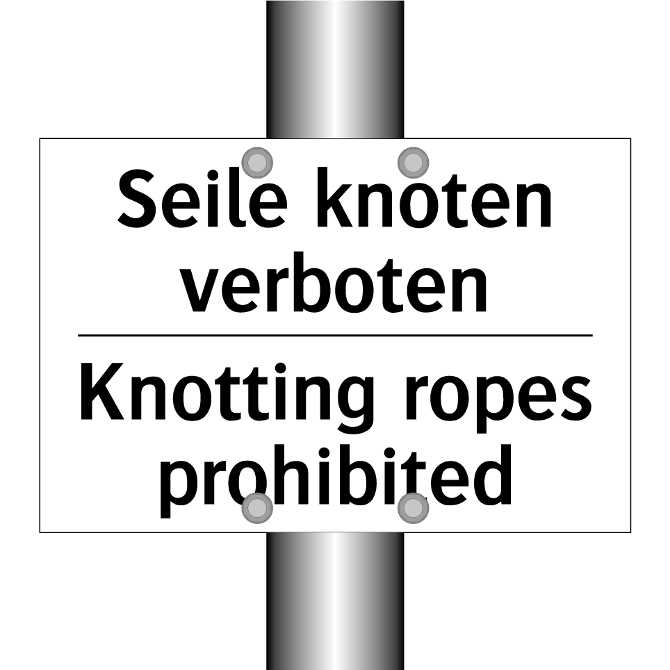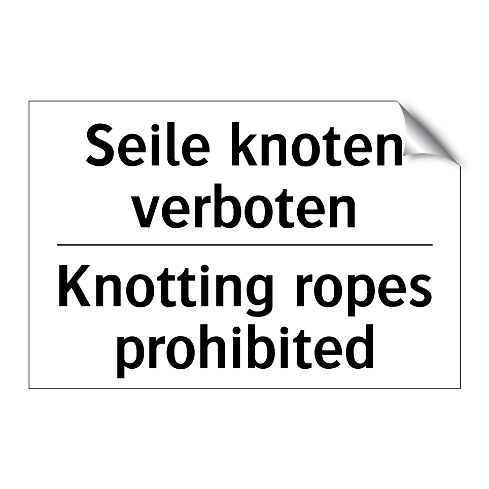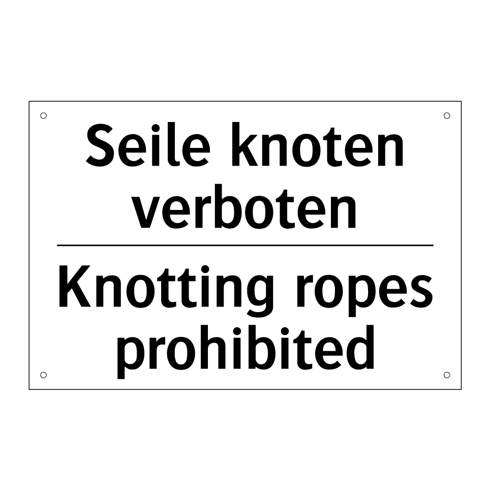 Zweisprachiges Verbotsschild mit deutschem Text Seile knoten verboten und englischem Text Knotting ropes prohibited