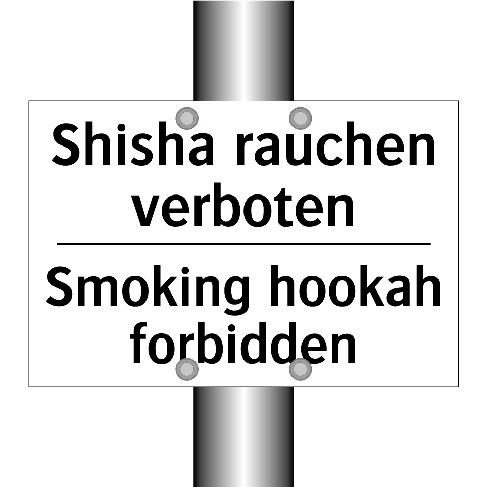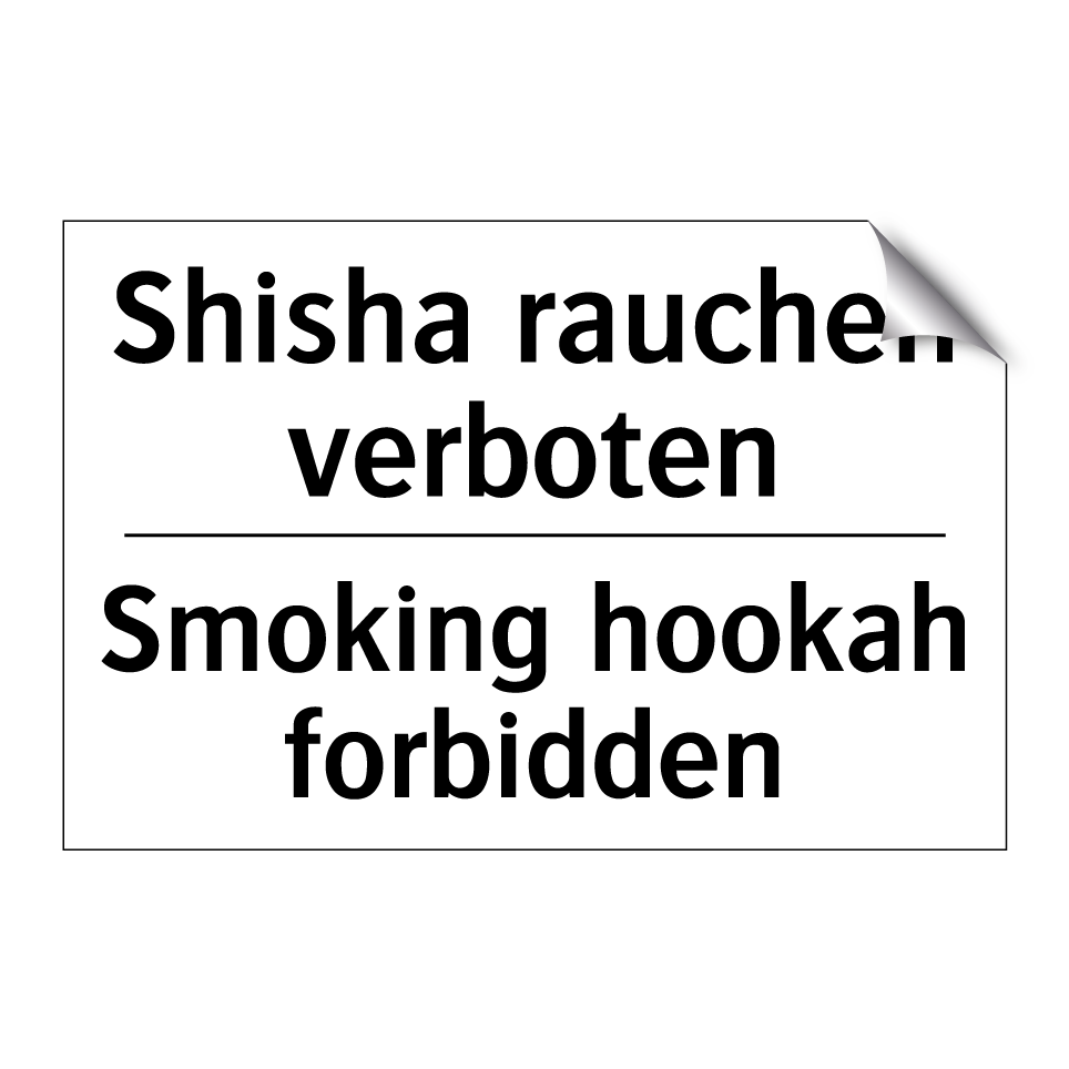 Zweisprachiges Verbotsschild mit deutschem Text Shisha rauchen verboten und englischem Text Smoking hookah forbidden