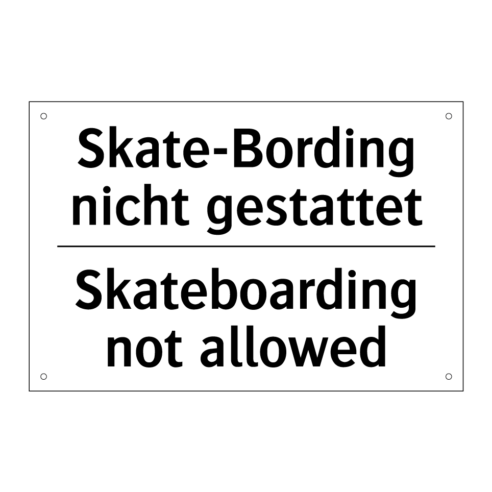 Zweisprachiges Verbotsschild mit deutschem Text Skate-Bording nicht gestattet und englischem Text Skateboarding not allowed