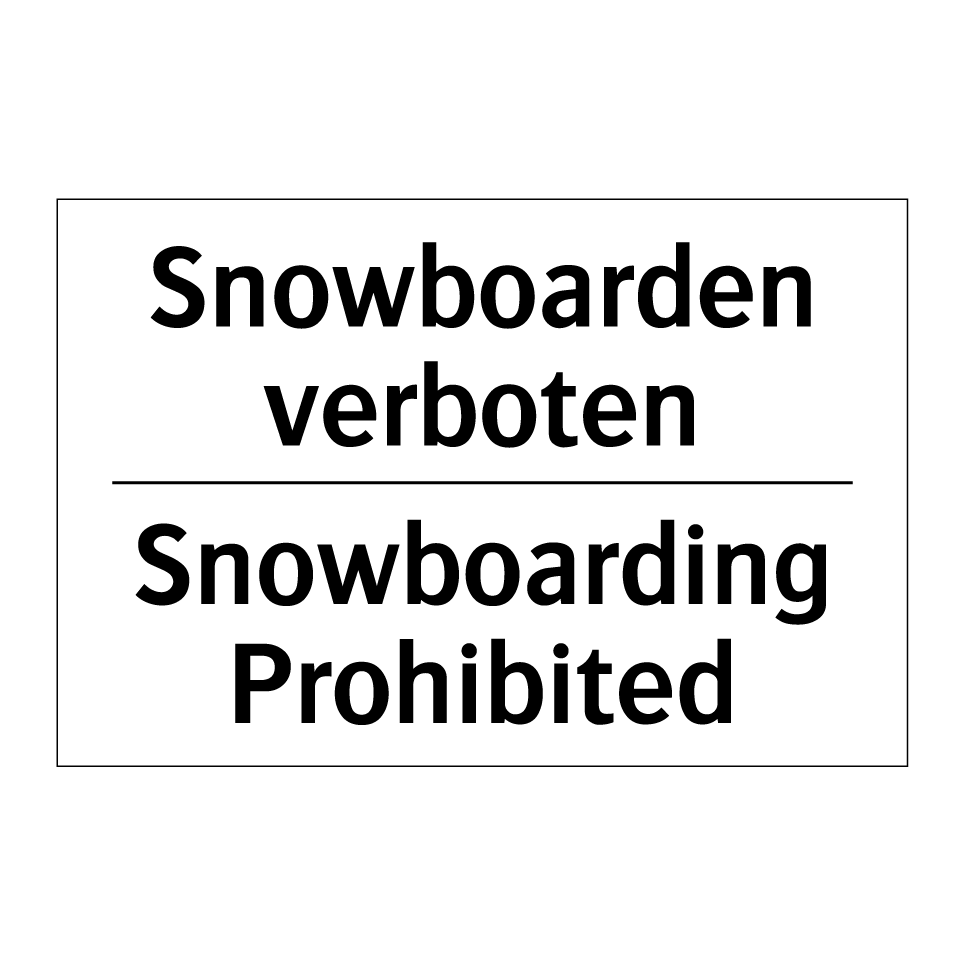 Diese zweisprachige Verbotsschild ist ideal für den Einsatz in Skigebieten, um sicherzustellen, dass Snowboarden in bestimmten Bereichen unterbunden wird. Mit klarer, schwarzer Schrift auf weißem Hintergrund ist die Botschaft sowohl auf Deutsch als auch auf Englisch leicht verständlich, was sie besonders nützlich für internationale Besucher macht. Platzieren Sie dieses Schild an Pisten, in der Nähe von Liften oder an anderen relevanten Orten, um die Sicherheit und Ordnung zu gewährleisten. Die Verwendung von zwei Sprachen erhöht die Reichweite und Effektivität der Kommunikation, indem sie eine breitere Zielgruppe anspricht. Perfekt für Betreiber von Skigebieten, die klare und deutliche Anweisungen geben möchten.