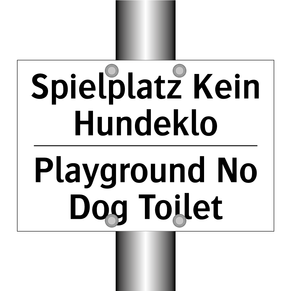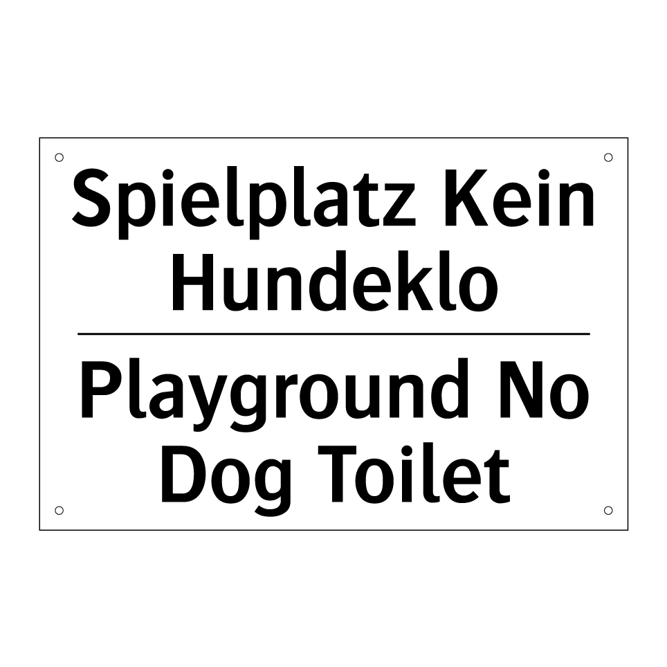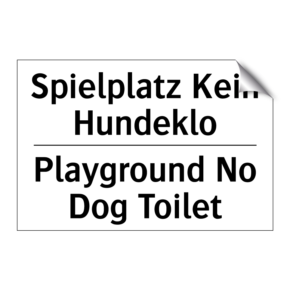 Zweisprachiges Verbotsschild mit deutschem Text Spielplatz Kein Hundeklo und englischem Text Playground No Dog Toilet