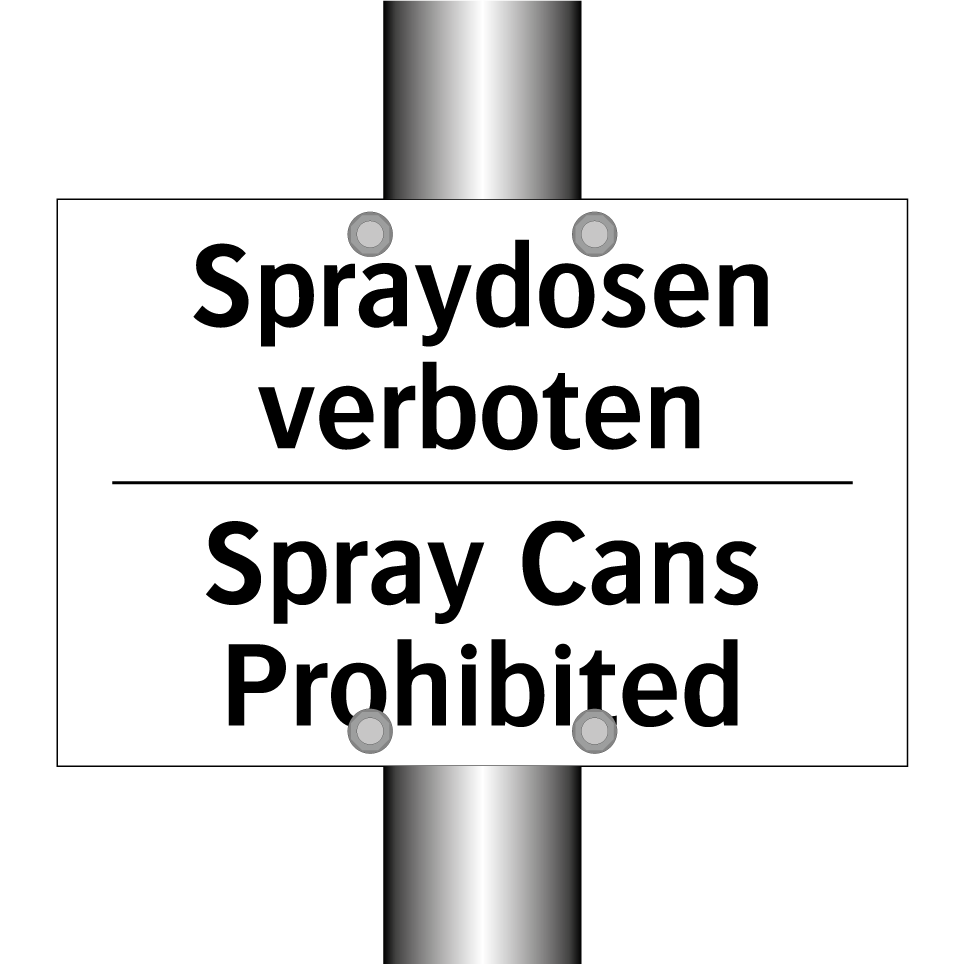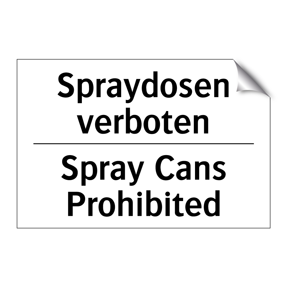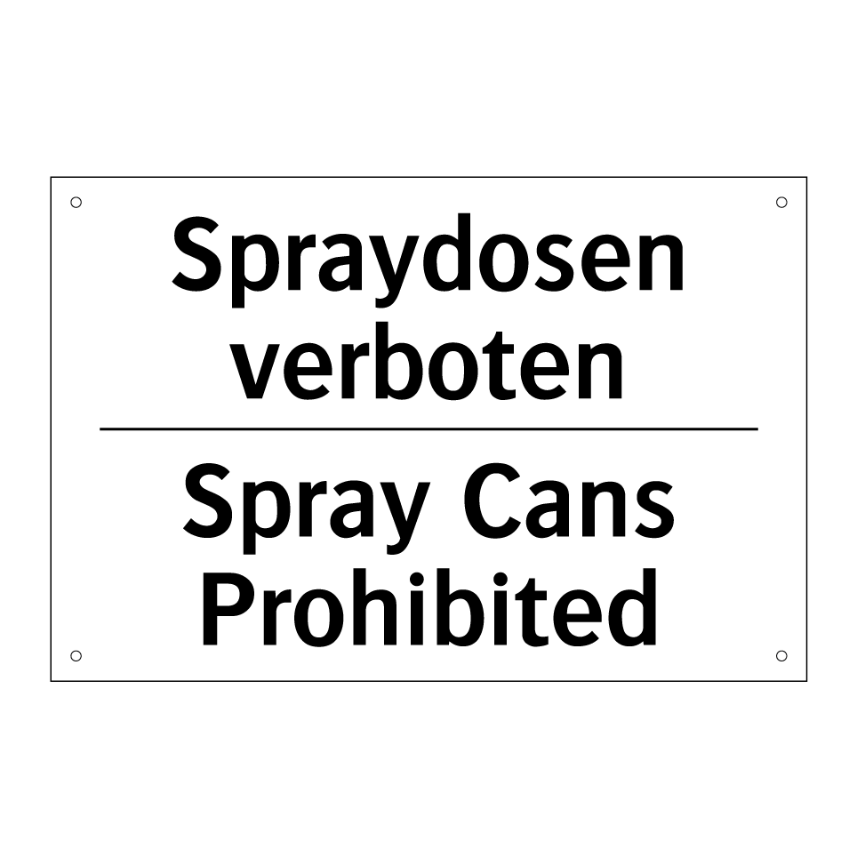 Zweisprachiges Verbotsschild mit deutschem Text Spraydosen verboten und englischem Text Spray Cans Prohibited