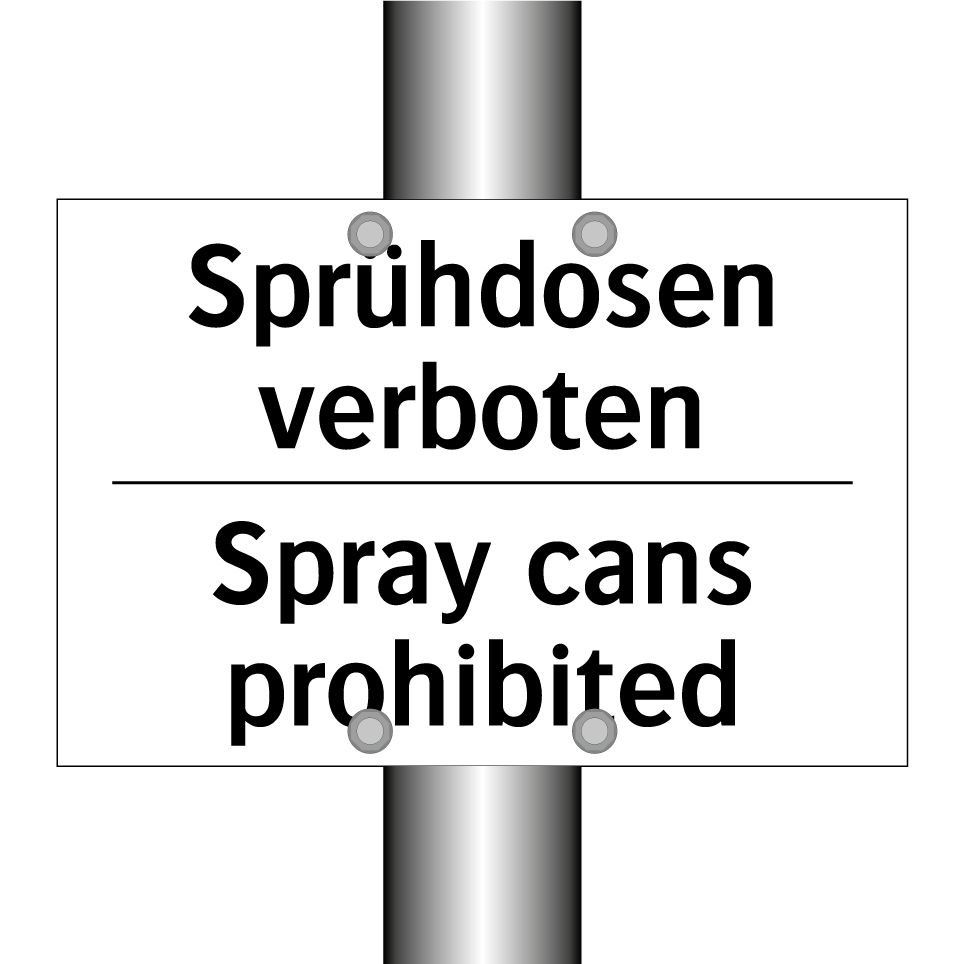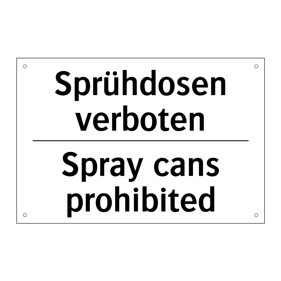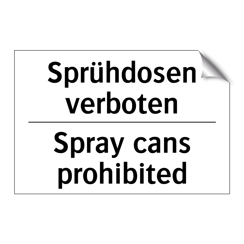 Zweisprachiges Verbotsschild mit deutschem Text Sprühdosen verboten und englischem Text Spray cans prohibited