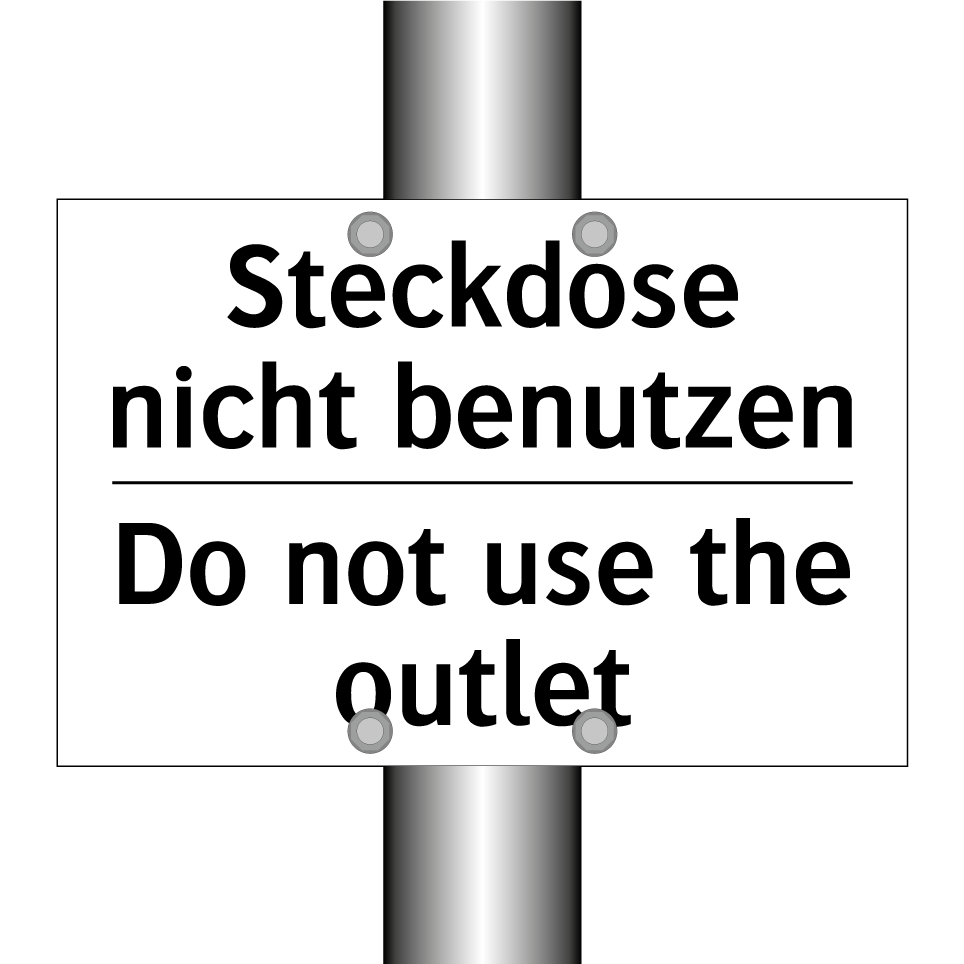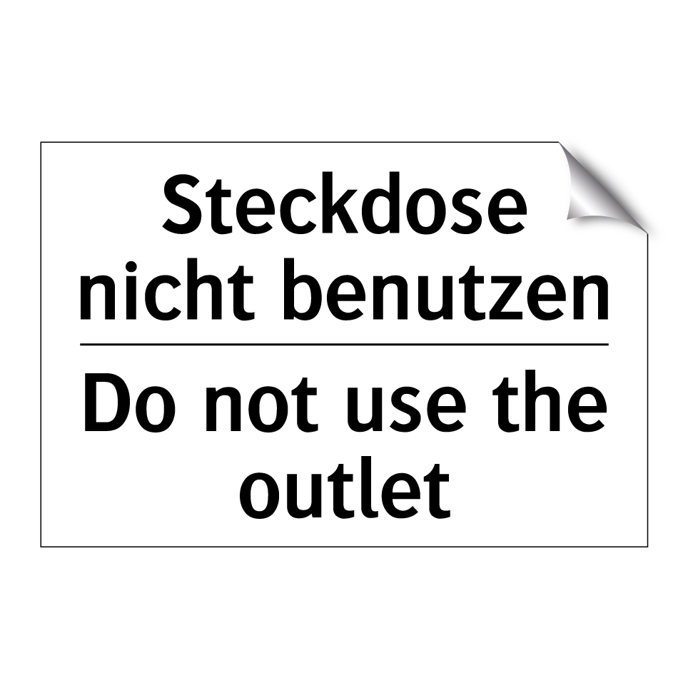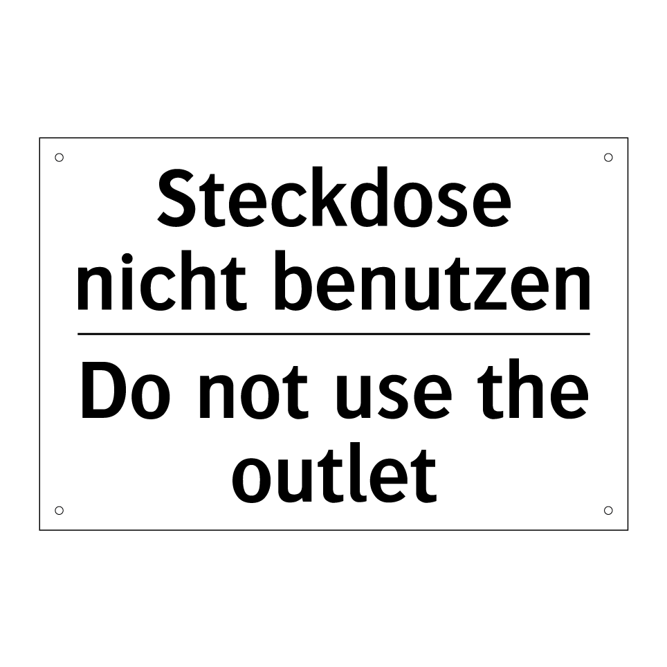 Zweisprachiges Verbotsschild mit deutschem Text Steckdose nicht benutzen und englischem Text Do not use the outlet