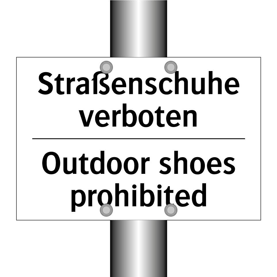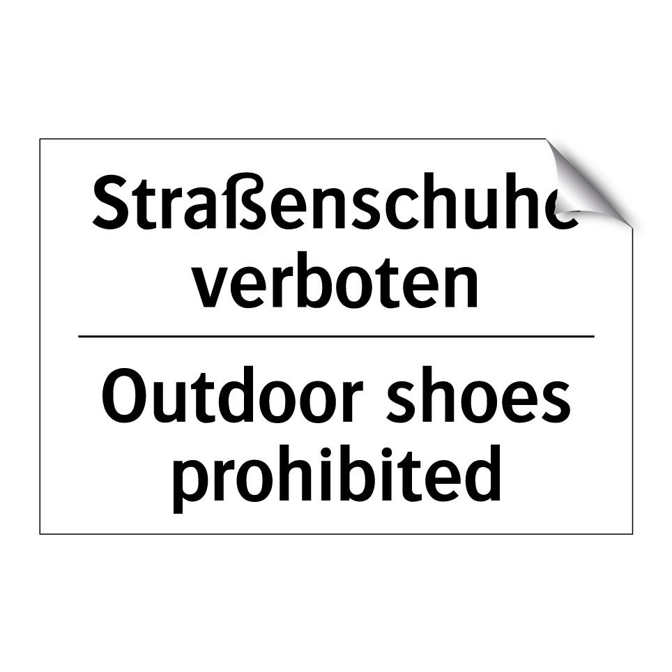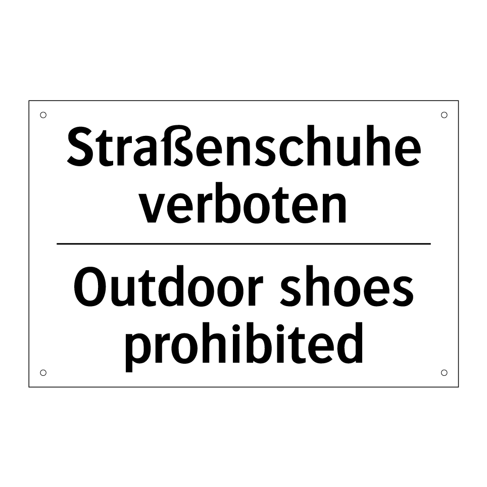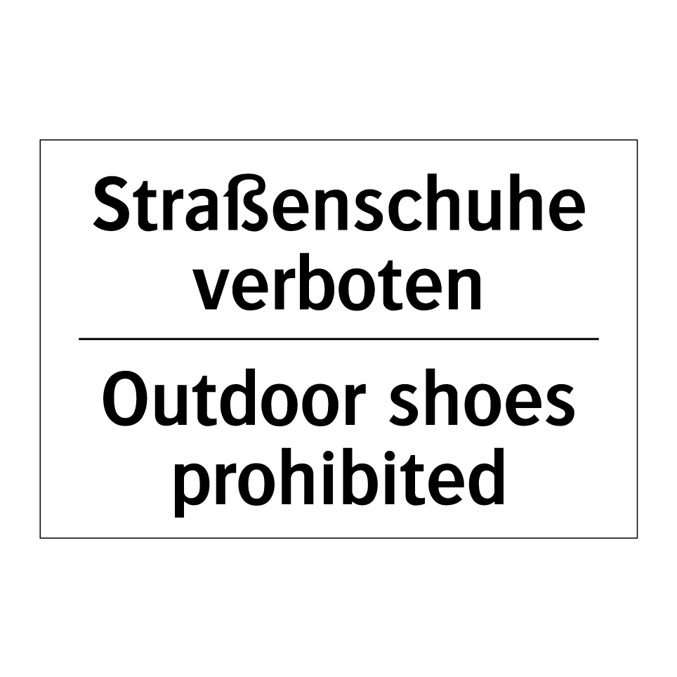 Zweisprachiges Verbotsschild mit deutschem Text Straßenschuhe verboten und englischem Text Outdoor shoes prohibited