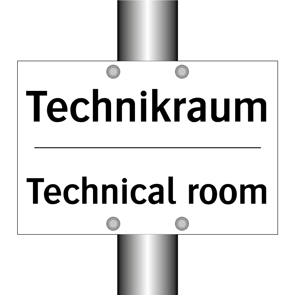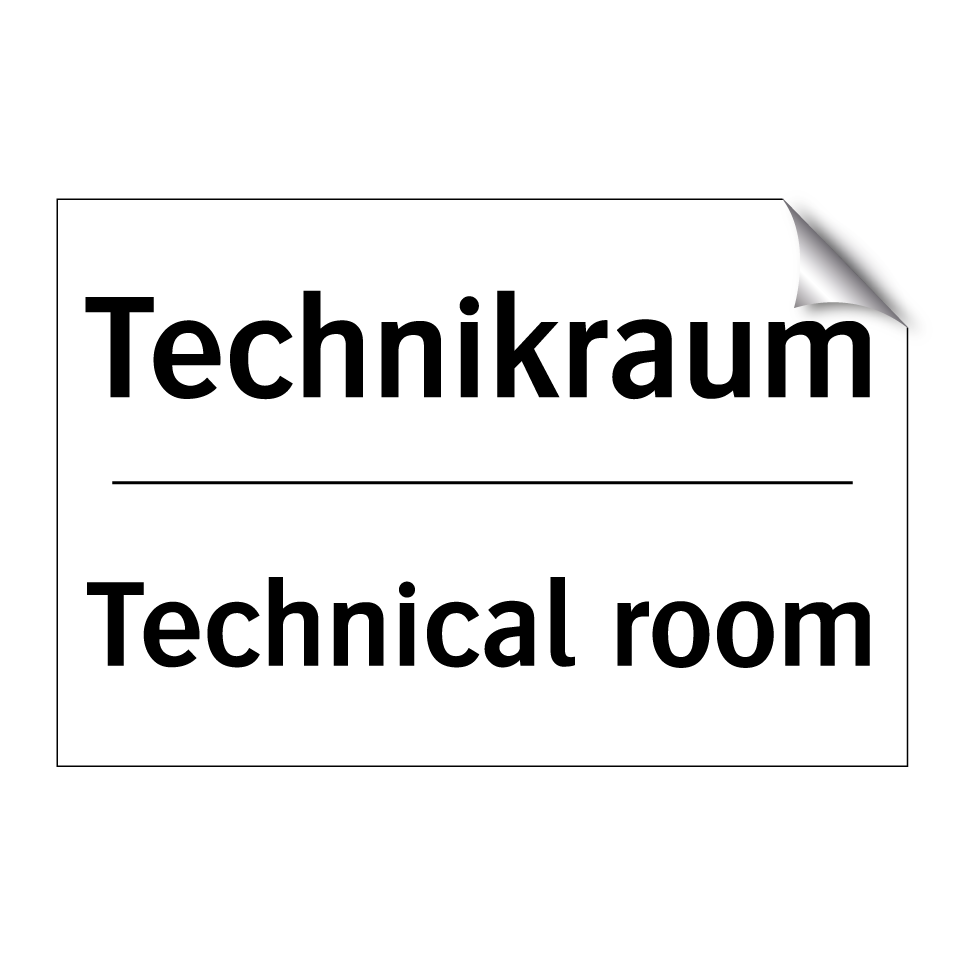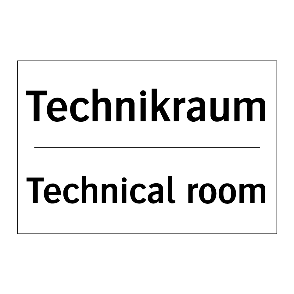 Zweisprachiges Verbotsschild mit deutschem Text Technikraum und englischem Text Technical room