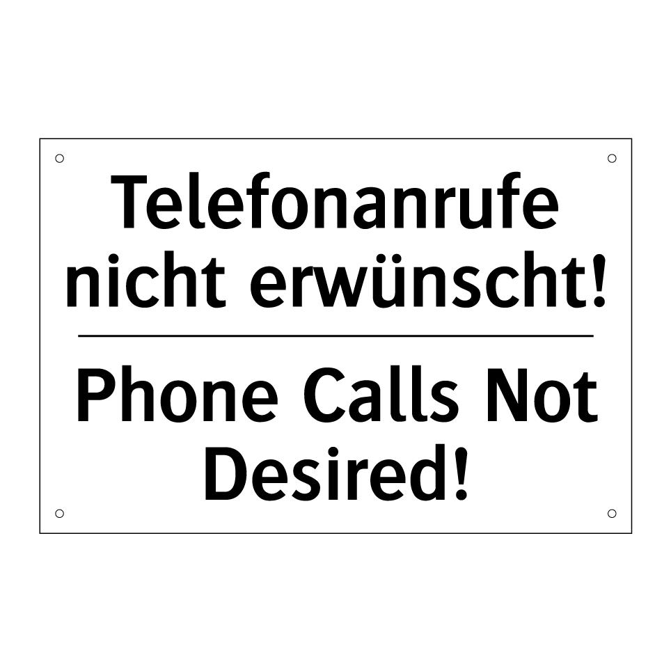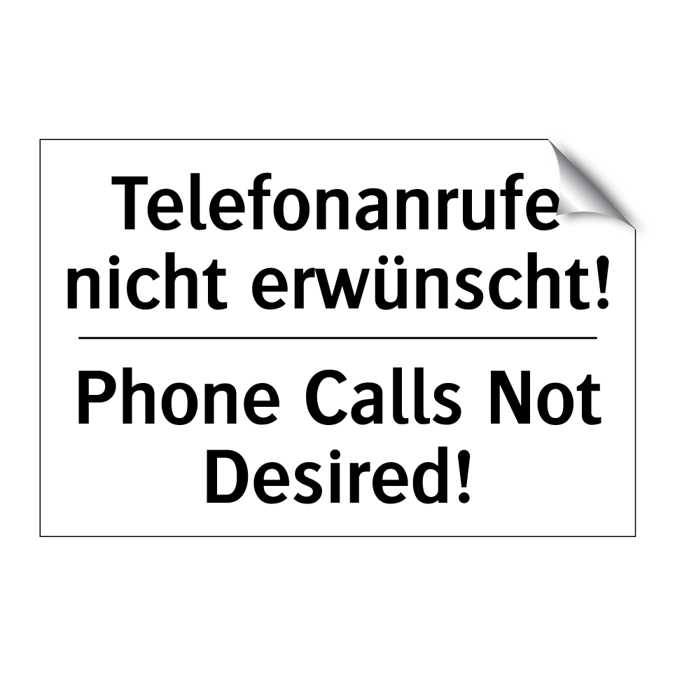 Zweisprachiges Verbotsschild mit deutschem Text Telefonanrufe nicht erwünscht! und englischem Text Phone Calls Not Desired!