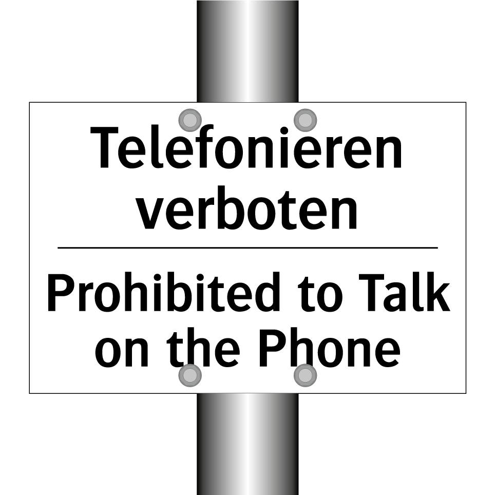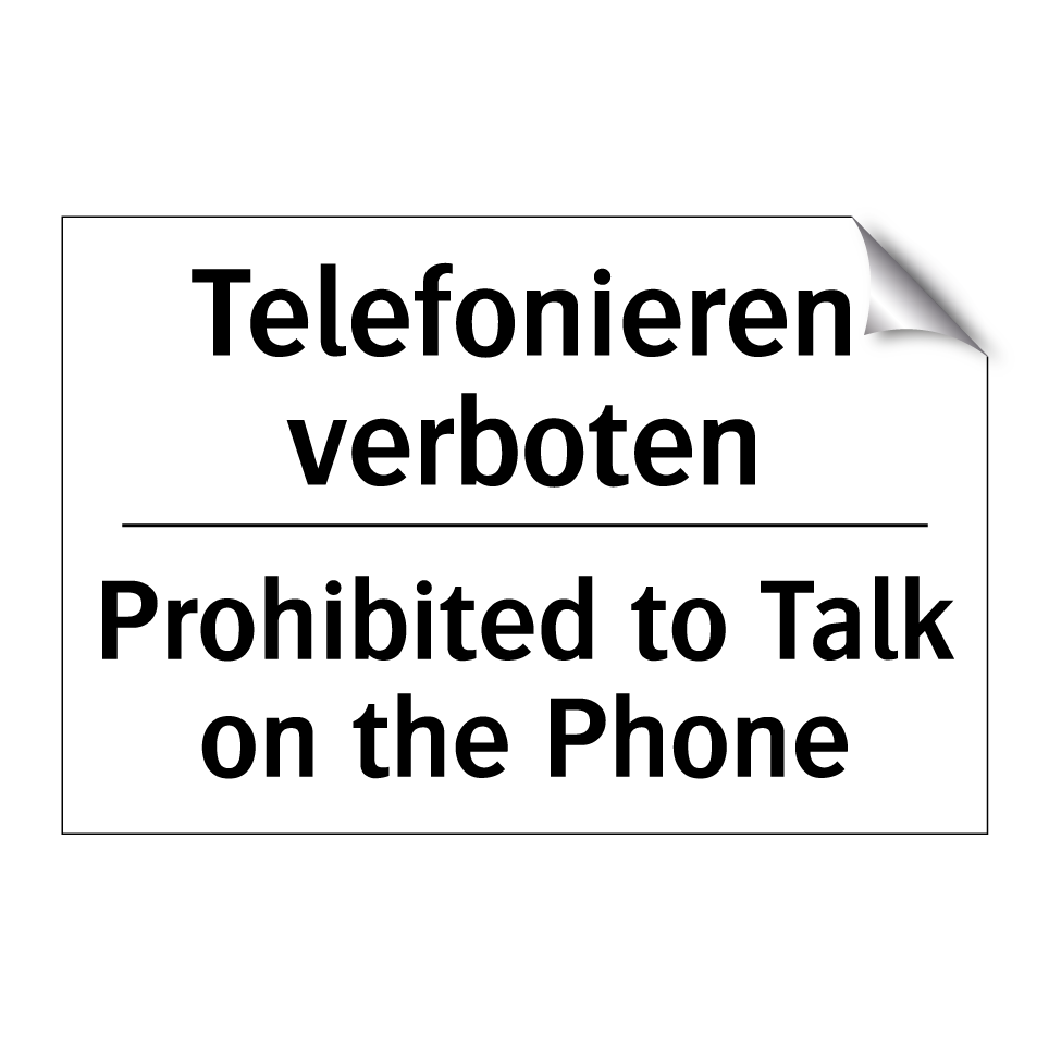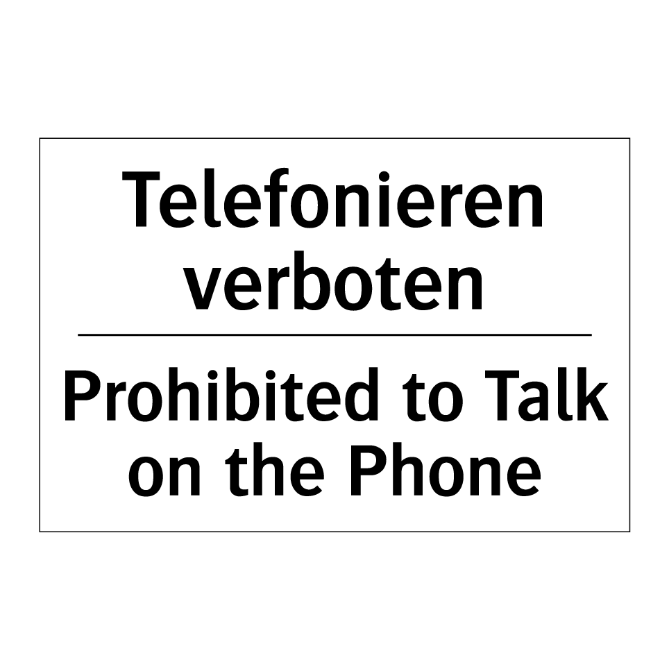 Zweisprachiges Verbotsschild mit deutschem Text Telefonieren verboten und englischem Text Prohibited to Talk on the Phone
