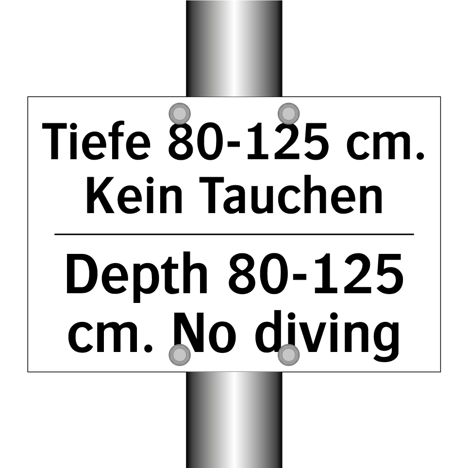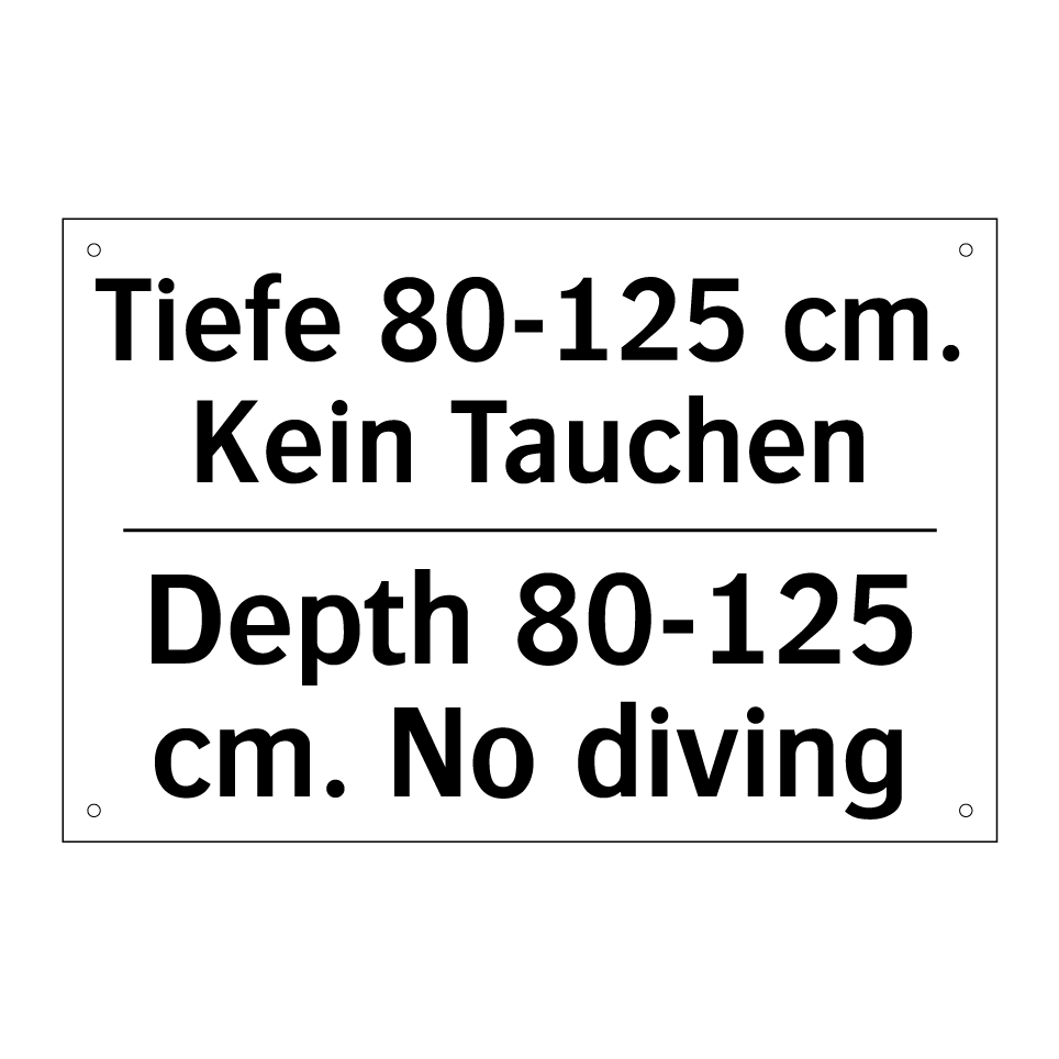 Zweisprachiges Verbotsschild mit deutschem Text Tiefe 80-125 cm. Kein Tauchen und englischem Text Depth 80-125 cm. No diving