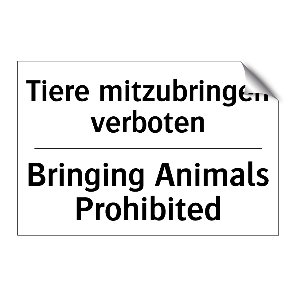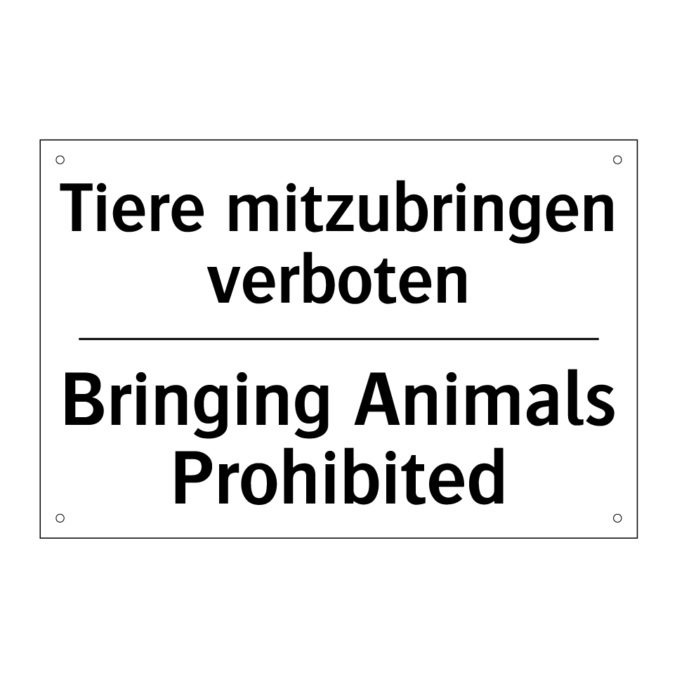Zweisprachiges Verbotsschild mit deutschem Text Tiere mitzubringen verboten und englischem Text Bringing Animals Prohibited