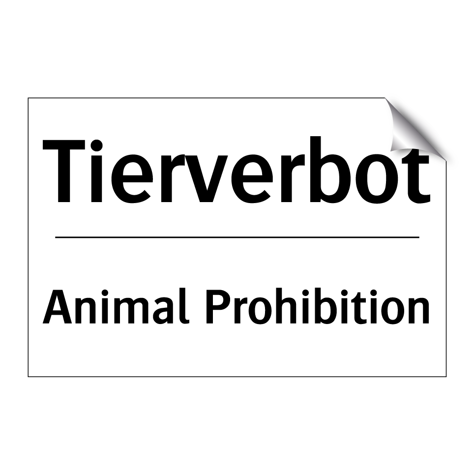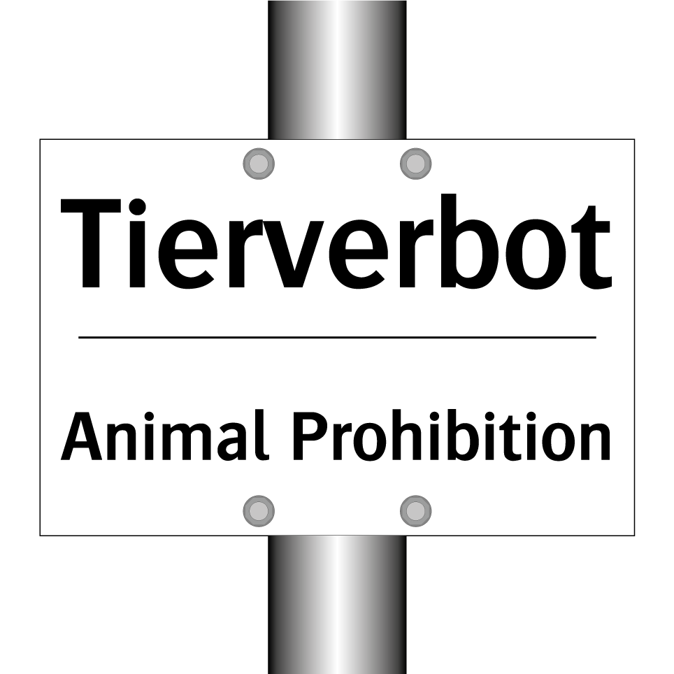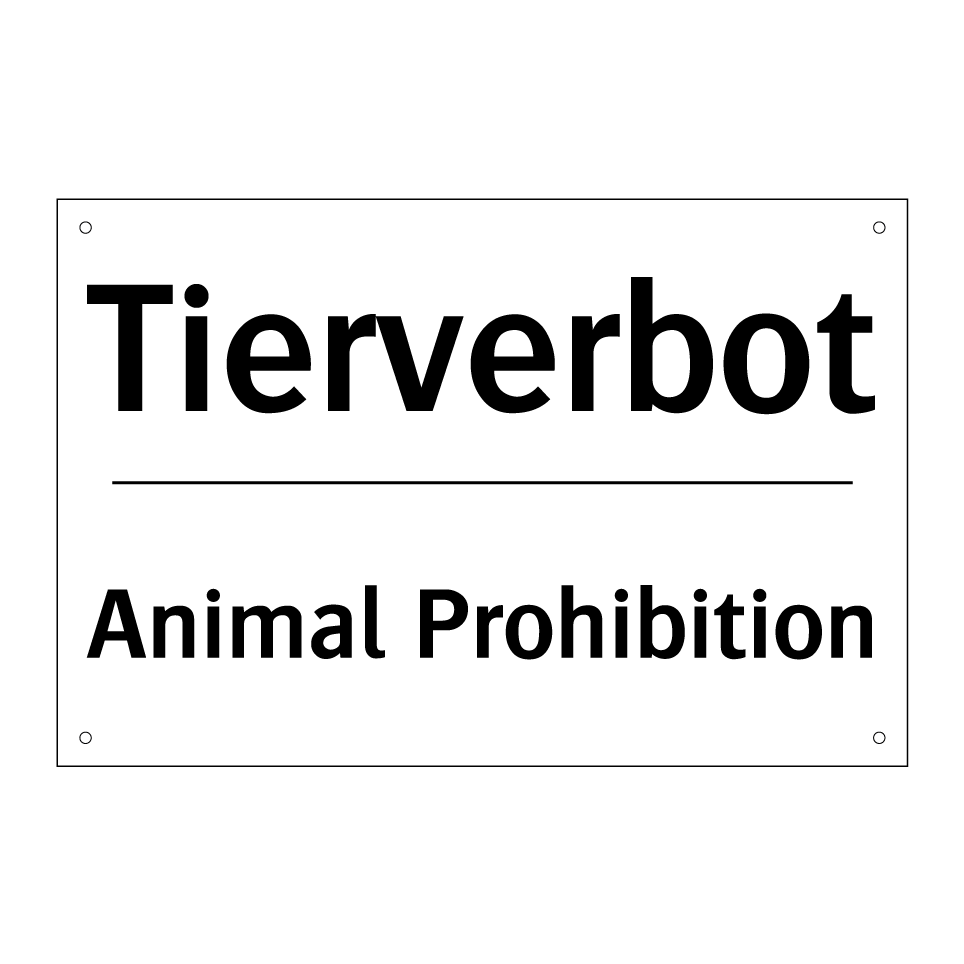 Zweisprachiges Verbotsschild mit deutschem Text Tierverbot und englischem Text Animal Prohibition