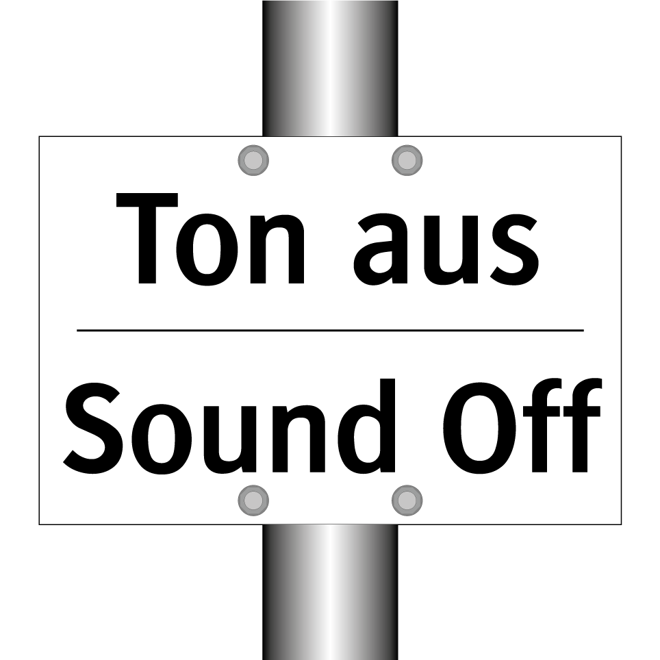 Zweisprachiges Verbotsschild mit deutschem Text Ton aus und englischem Text Sound Off